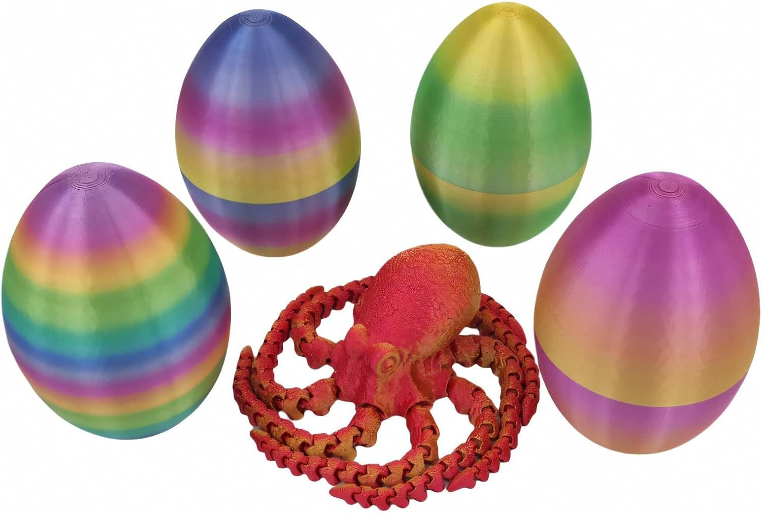 - Rainbow-Colored Eggs and Colorful Octopus: The 9.5-inch octopus is lovingly crafted using stunning 3D printing technology, making it the perfect decorative piece for your home or office. You will get 1 octopus and 1 egg