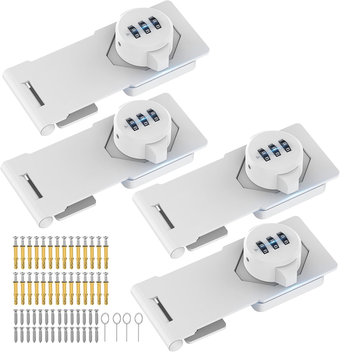 Household Cabinet Password Hasp Locks, Cabinet Locks with Combination, Door Security Slide Latch for Small Barn Doors, Bathroom, Outdoor, Garden (4 Pack Black White)