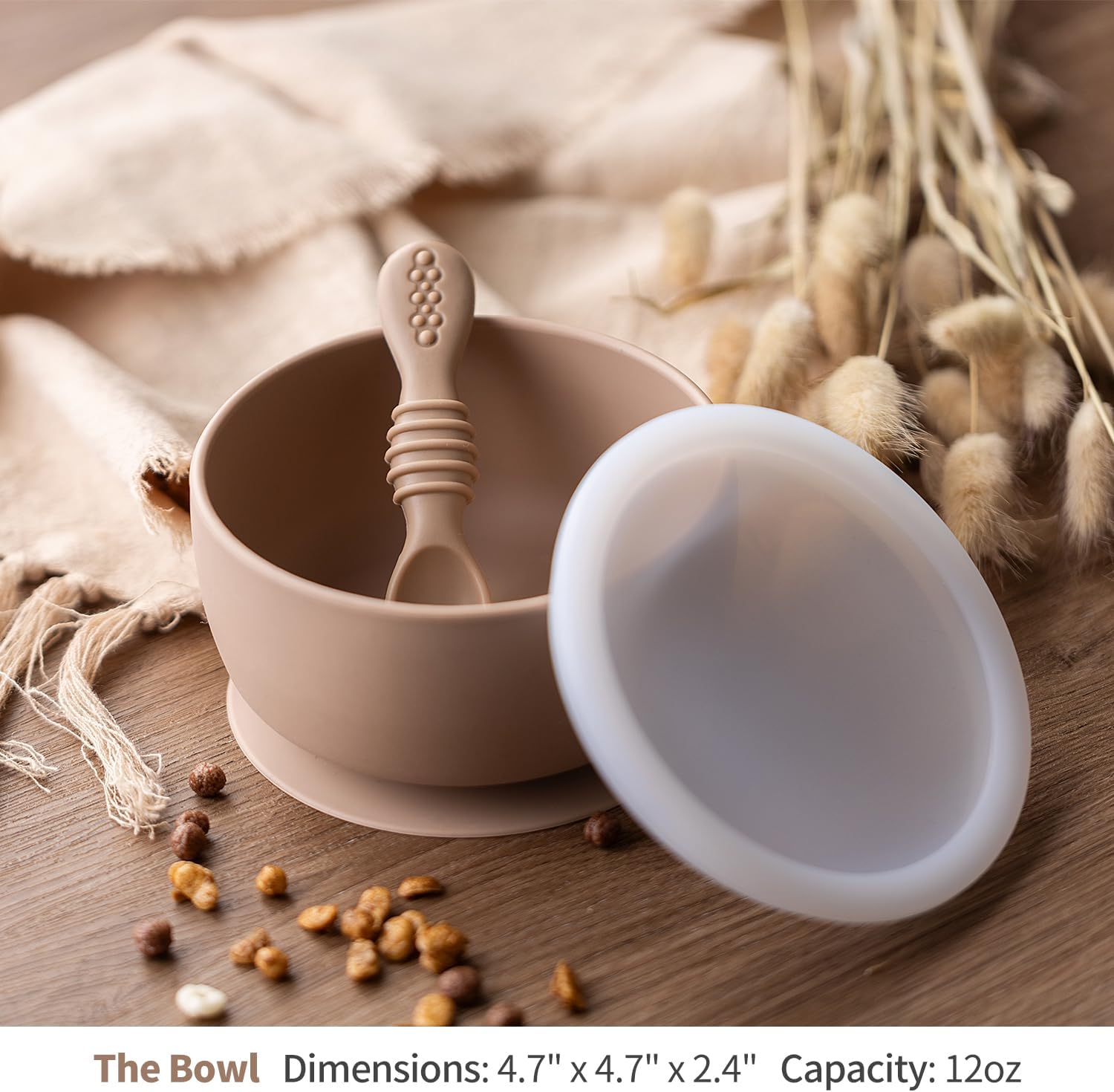 SAMiGO Silicone Baby Bowl and Spoon Set with Suction and Lid, First Stage Self Feeding Essentials, Food Bowl for 6+ Months