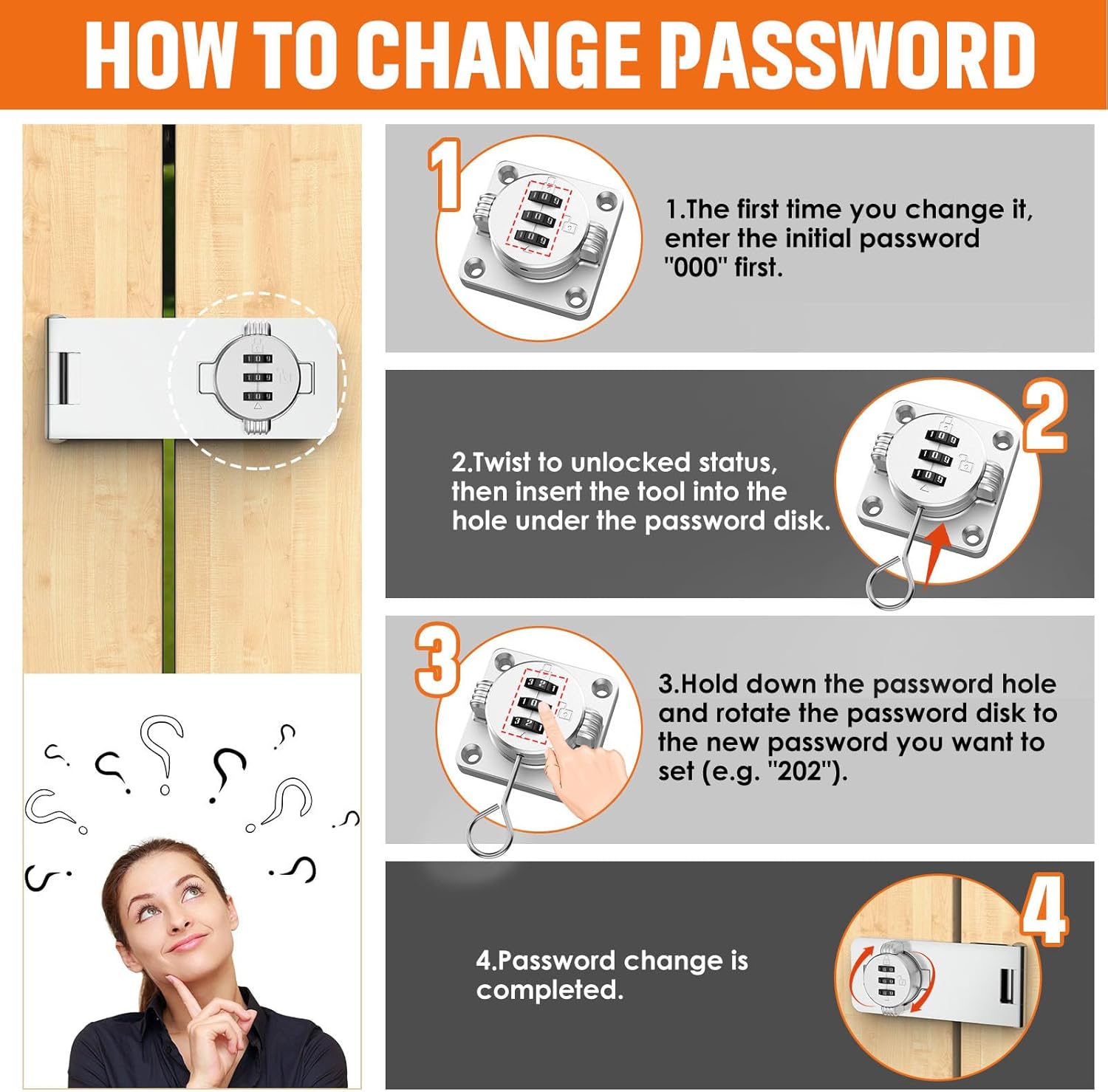 - Password Unlock: The three-digit combination lock is designed to be both secure and convenient. With up to 1000 combinations of passwords, you can set your own exclusive password according to your own preferences or habits, no need to use keys to unlock the door, eliminating the worry of lost keys and providing a certain level of security for your personal belongings