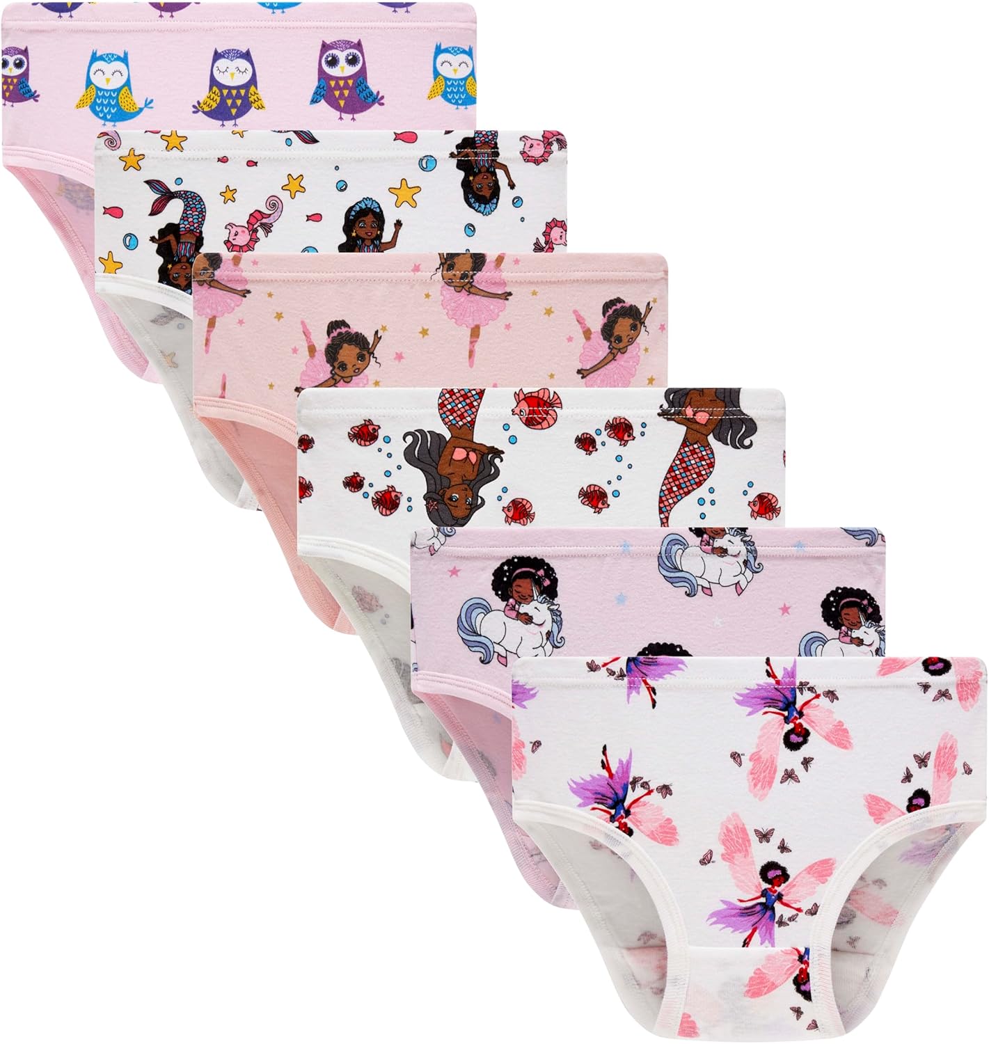 Cadidi Dinos Little Girls' Soft Cotton Underwear Kids Cool Breathable Comfort Panty Briefs Toddler Undies(Pack of 6)