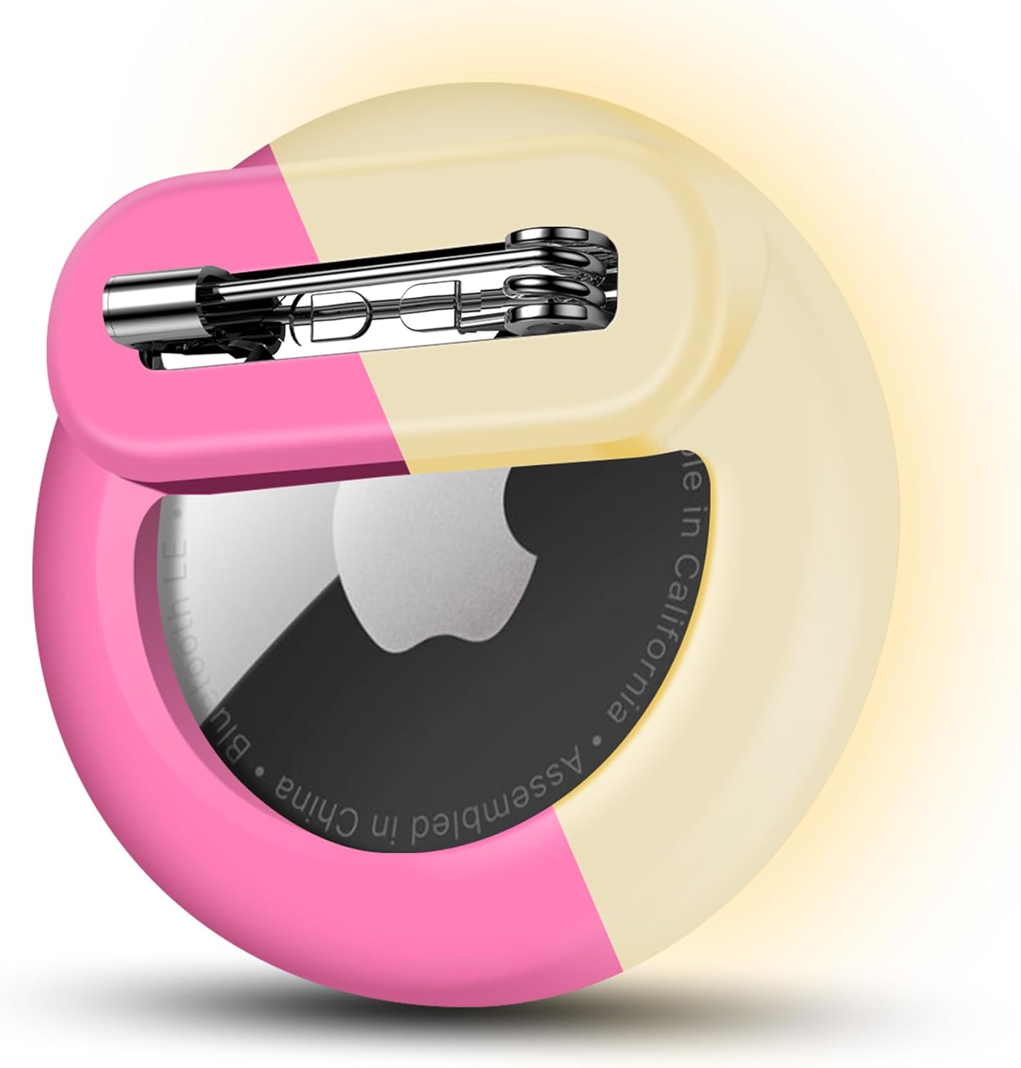 Tracker Holder for AirTag with Pin, Safe Hidden Lightweight GPS Tracker for Kids Compatible with Apple Air Tags for Child, Elderly, Pets Collar, Shoes (Luminous Pink, 1 Pack)