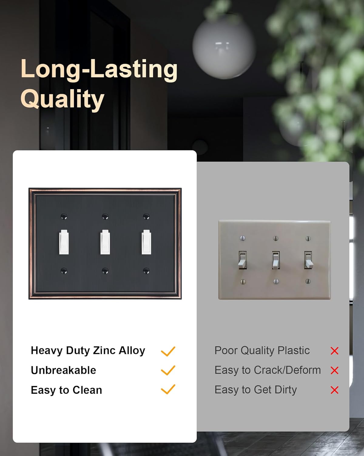- Stylish yet Simple - Beautifully designed with simple, clean lines and exquisite aged bronze finish, our triple light switch cover plate adds a touch of elegance and sophistication to your decor. The brushed texture further enhances its stylish appeal, effortlessly complements any room, adding an instant touch of elegance and charm.