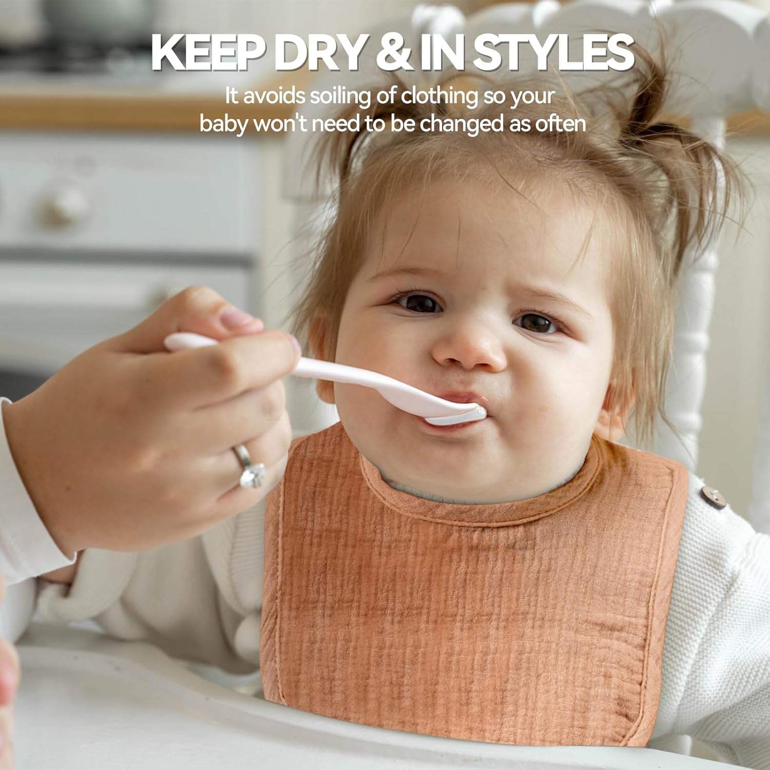 • Multiple Uses: Our cotton muslin baby bibs 0-36 months for drooling and teething are suitable for drooling, feeding, burping, and dealing with spills and messes. They can also be used for bathing and as a face towel. You can even carry them with you as a handkerchief. Natural organic cotton is suitable for all skin types, including sensitive skin.
