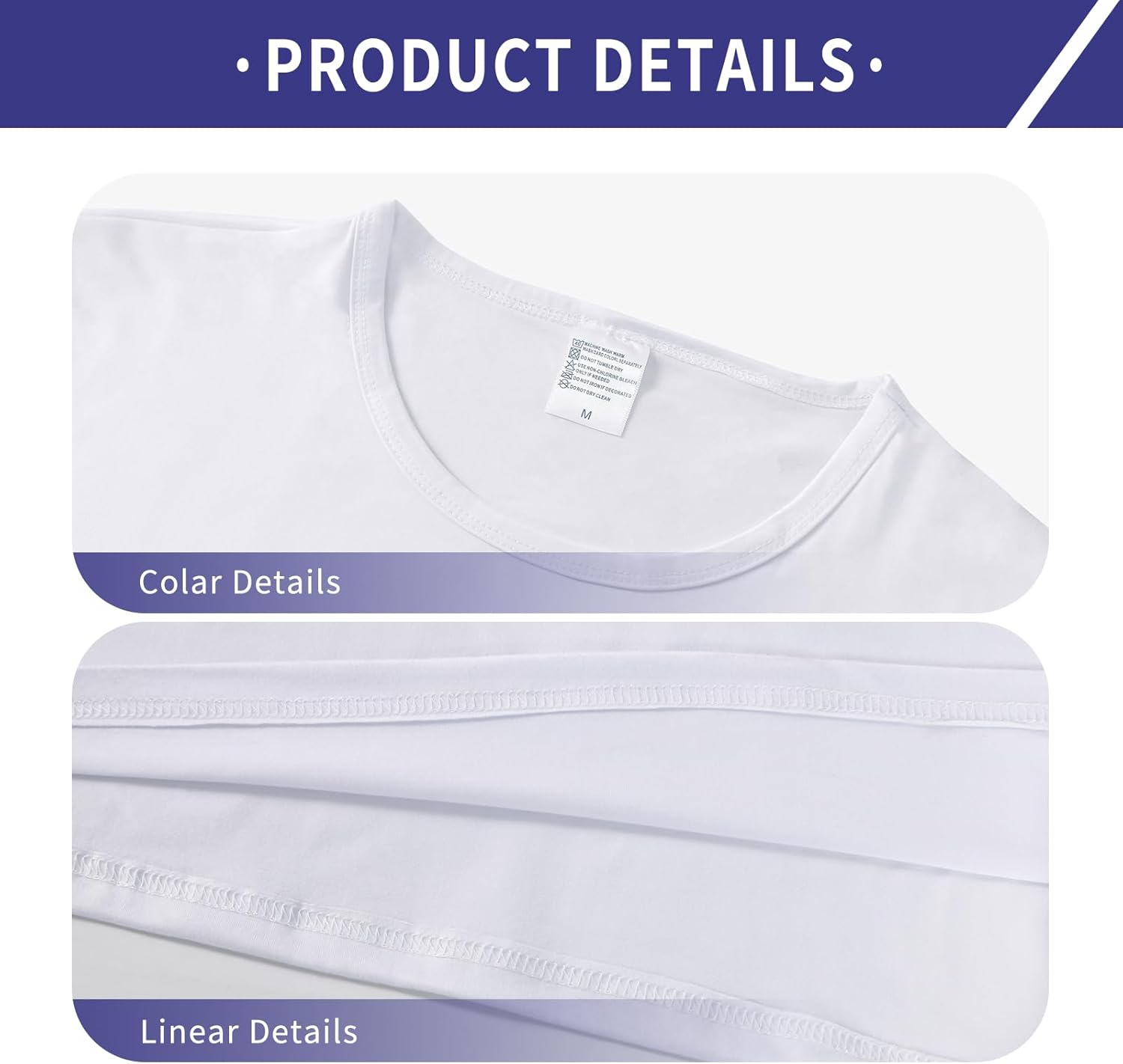 • Material :This blank T-shirt is made of high-quality 100% polyester fabric that is comfortable, breathable, not easy to pill, and soft. At the same time, it also has good durability and wrinkle resistance, and will not lose its original texture even after multiple washings