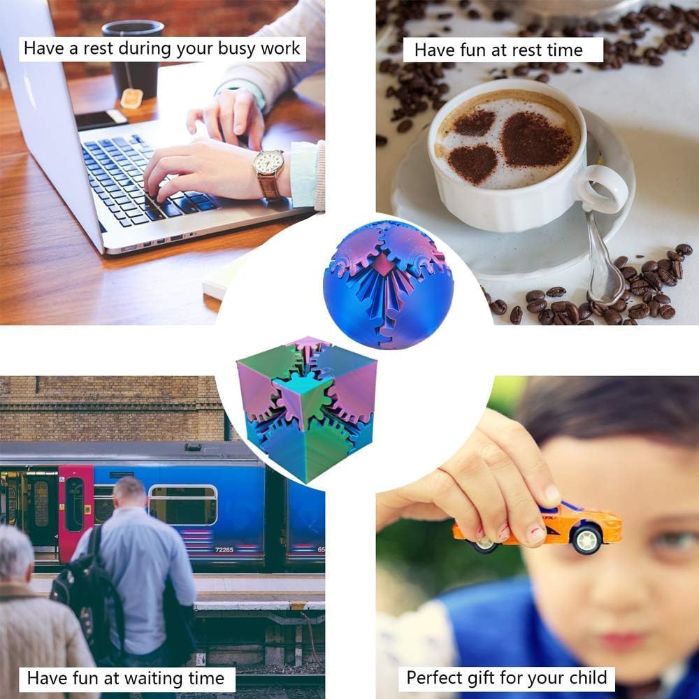 Gear Ball 3D Printed Gear Ball Spin Ball OR Cube Fidget Toy - Perfect for Stress and Anxiety Relaxing Fidget Toy, Desk Toy - Ideal for Sensory Needs and Autism (Red Blue)