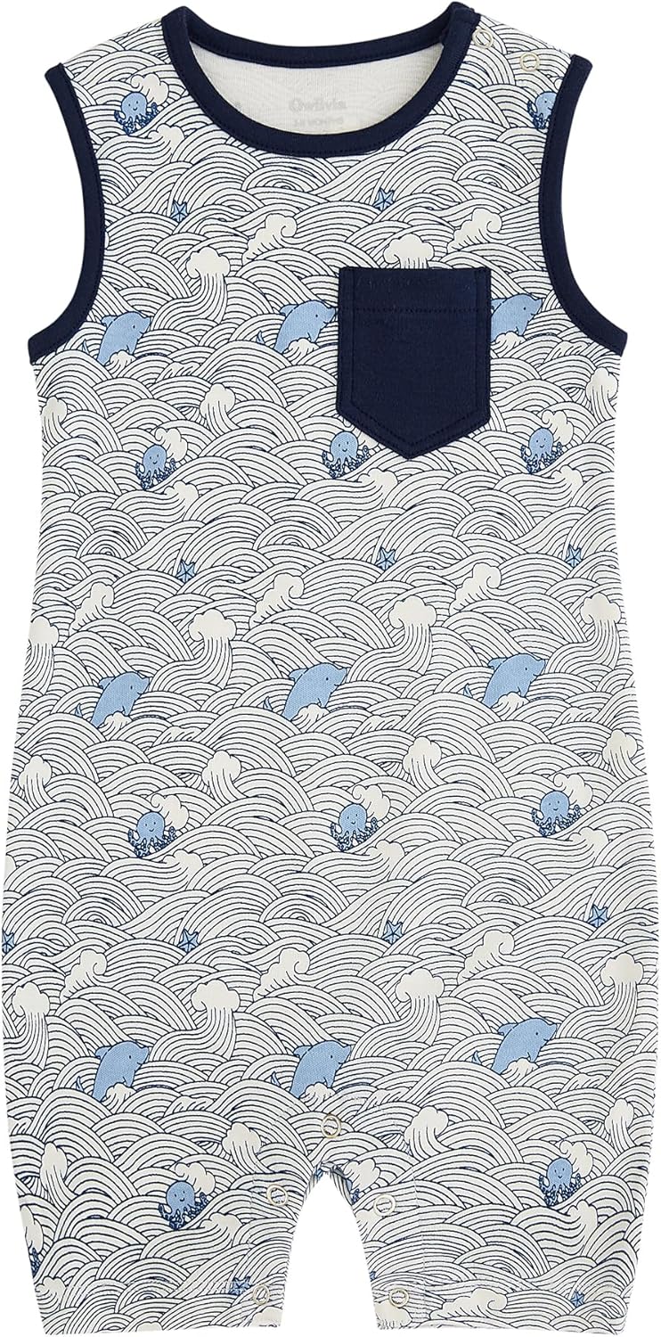 Owlivia Baby Short Sleeve Summer Romper Set, 2 Pack Tank Jumpsuit for Girls and Boys, Cartoon One Piece Coverall Outfit