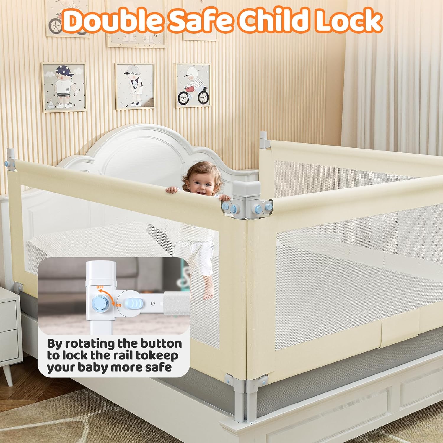 Bed Guard Rail for Toddlers - 59" Quick Assembly & Double Side Lift with Safety Child Lock - Adjustable Height Baby Bed Rails for Queen Full King Twin Crib Bunk Size Bed(Beige, 1 Pack)