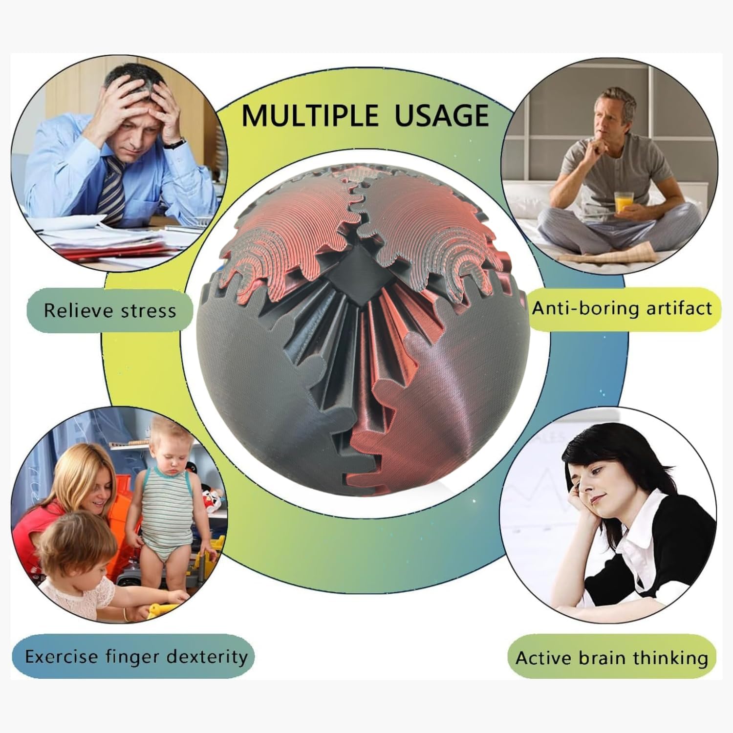 - 【Pocket-Sized Fun】The Gear Ball is your perfect companion for on-the-go fun! Its compact size allows you to take it anywhere you please. Whether you're at work, in class, or simply in need of a mental recharge, the Gear Ball is there to provide a portable and enjoyable fidgeting experience.