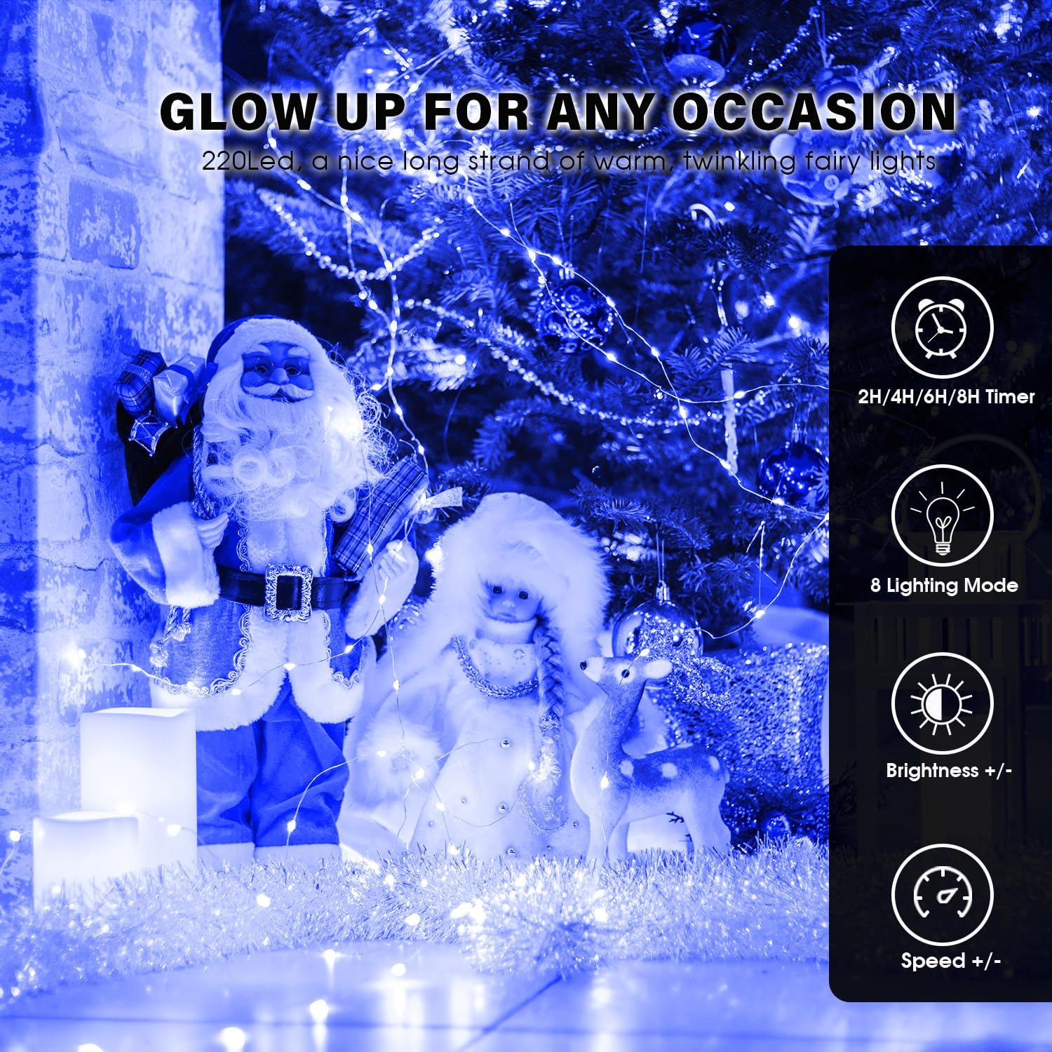Fairy Lights 72ft 220 LED USB Twinkle String Lights Plug in Silver Wire Lights with Remote and Timer 8 Modes Outdoor Waterproof Starry Lights DIY Party Wedding Christmas Decoration(Blue)
