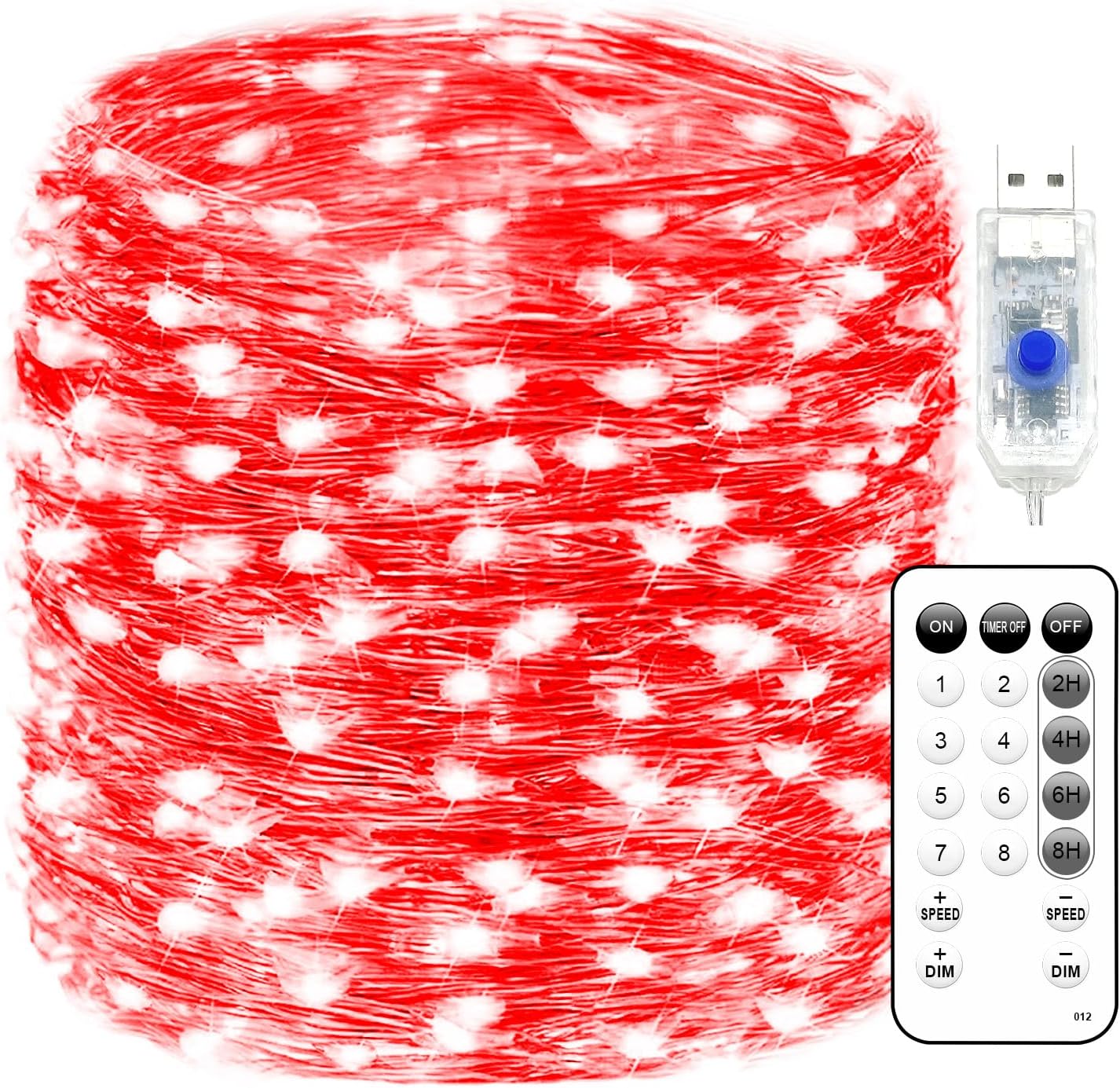 Fairy Lights 72ft 220 LED USB Twinkle String Lights Plug in Silver Wire Lights with Remote and Timer 8 Modes Outdoor Waterproof Starry Lights DIY Party Wedding Christmas Decoration(Red)