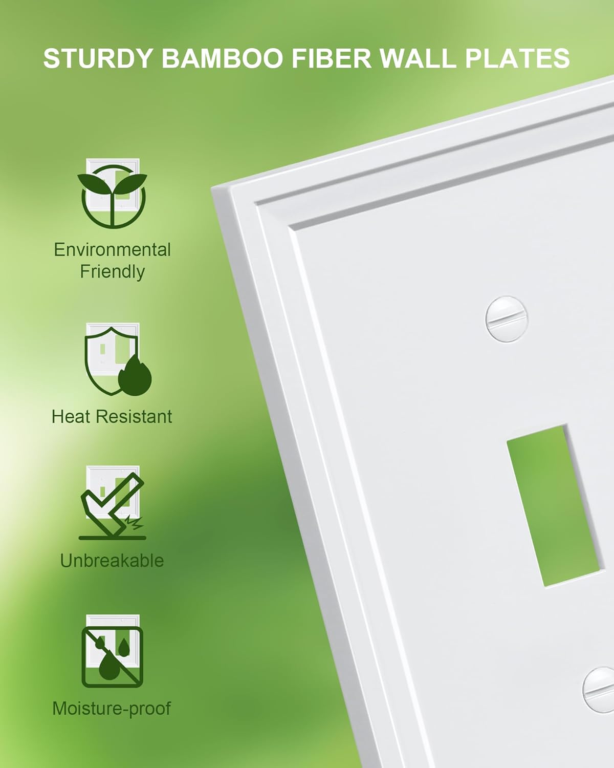 2-Pack Combo Toggle/Decorator Light Switch Cover Plate, White Decorative Electrical Outlet Covers, Bamboo Fiber Wall Switch Plates and Outlet Covers