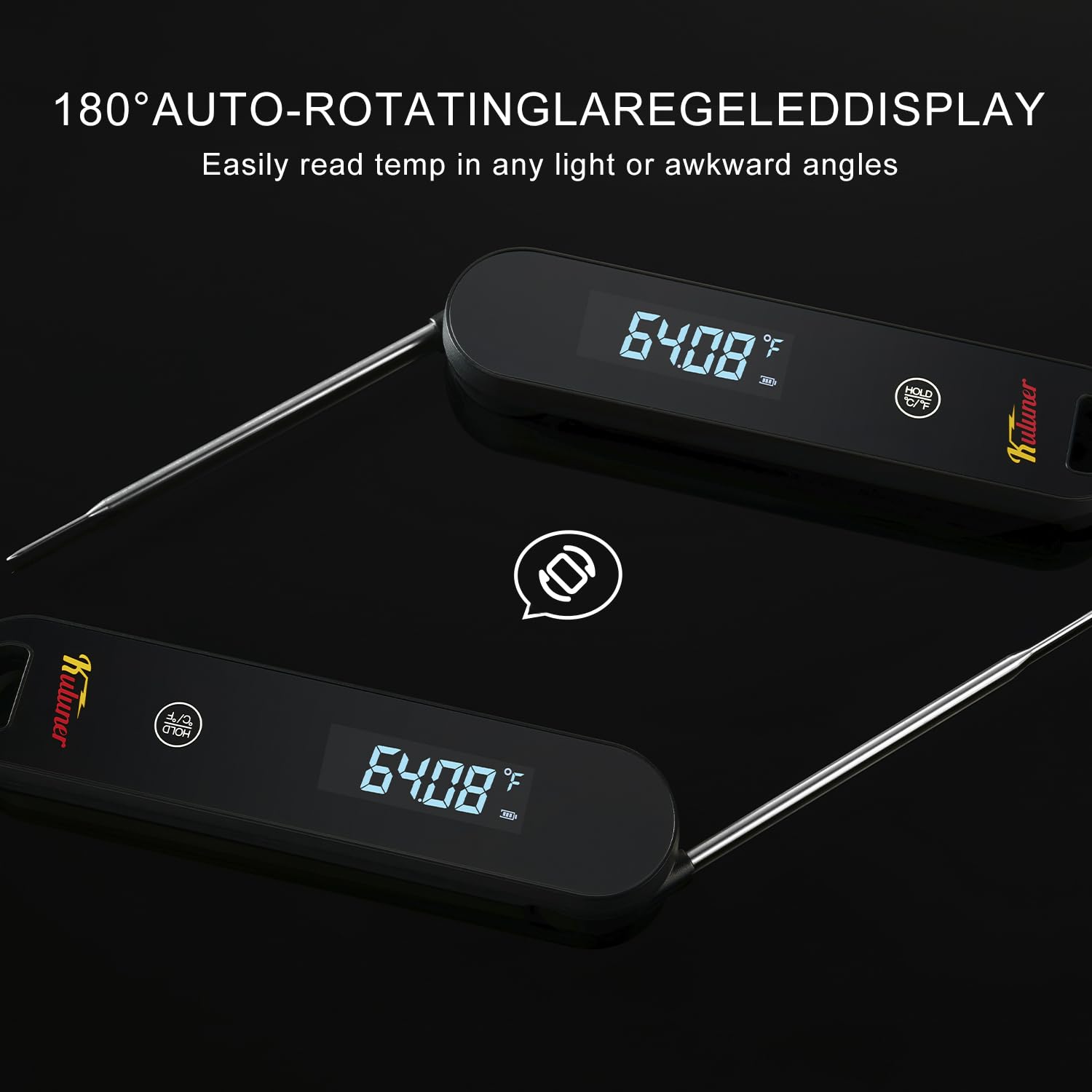 - Waterproof & Smart: KULUNER thermometer is IP67 waterproof, so you can easily rinse it off under the faucet after use (no dishwasher needed). It also lets you switch between °C and °F with a breeze and has a hold function to lock in readings.