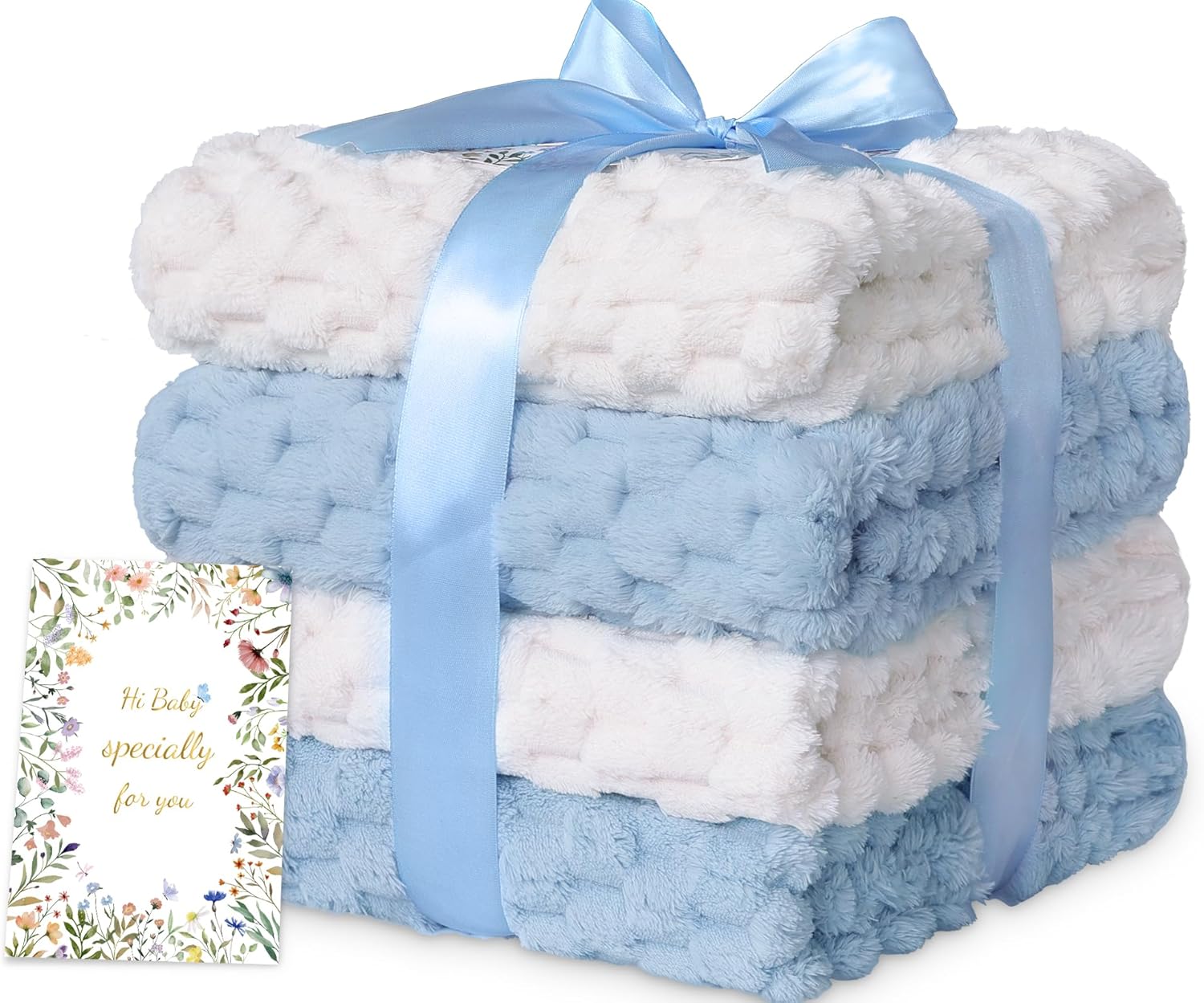 HOMRITAR 4 Pcs Baby Blanket for Unisex 3D Flannel Fleece Fluffy Blankets for Baby Soft Plush Breathable Bed Blanket for All Season Toddler Infant or Newborn 30 x 40 Inch (2 Pcs Blue, 2 Pcs Cream)