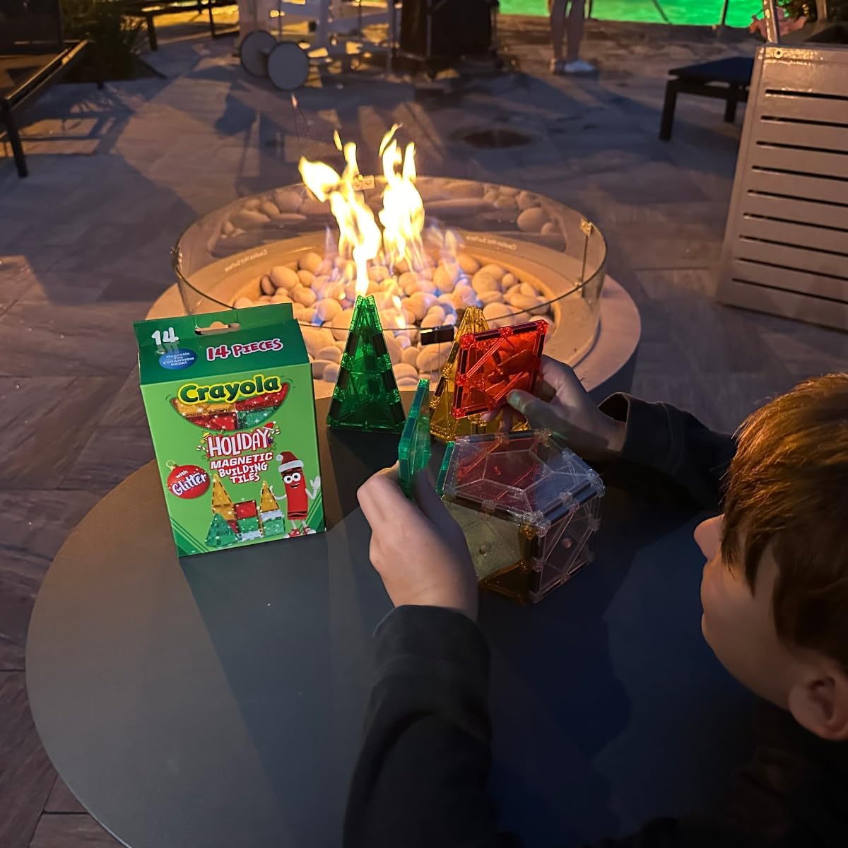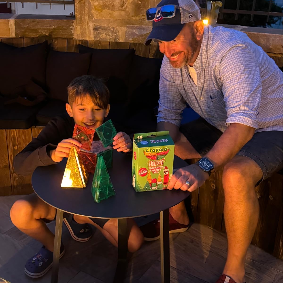 CreateOn Crayola Holiday Glitter Magnetic Tiles, Building Set for Kids, Magnetic Building Toys for Kids, STEM Travel Toys for Boys and Girls Ages 3+, 14-Piece Set (Holiday Glitter)