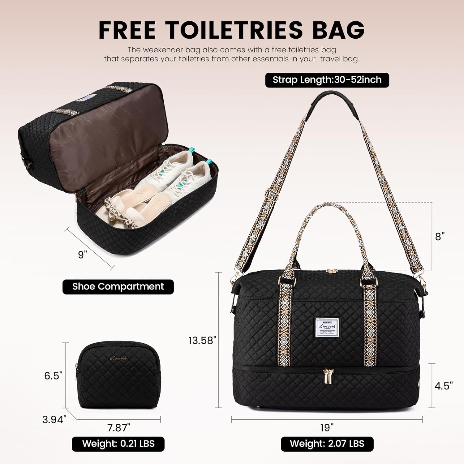 LOVEVOOK Travel Duffle Bag,Weekender Bags for Women with Shoe Compartment,Carry on Overnight Bag with Toiletry Bag,Gym Duffel Bag with Wet Pocket, Hospital Bags for Labor and Delivery