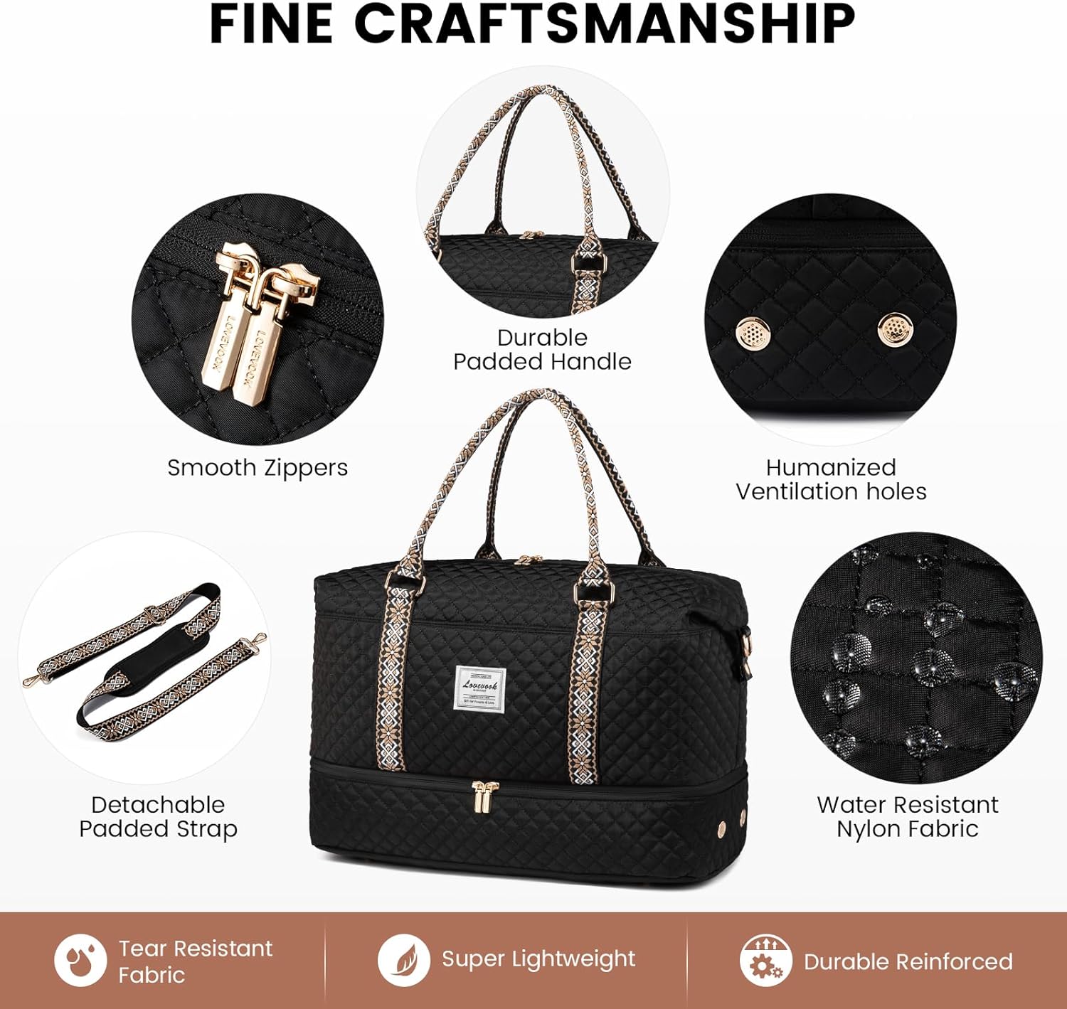 - 【MULTIPURPOSE DUFFEL BAG & PERFECT SERVICE】Use it as a duffel bags for traveling,weekend bag for women,personal item travel bag,mommy bag for hospital,gym bags for women,carry on bag,or laptop bag. Great Birthday/ Thanksgiving/ Christmas gift for your friends and family. With LOVEVOOK's reliable after-sales service and fine craftsmanship, We promise that if you are not satisfied within one month, you can refund unconditionally.