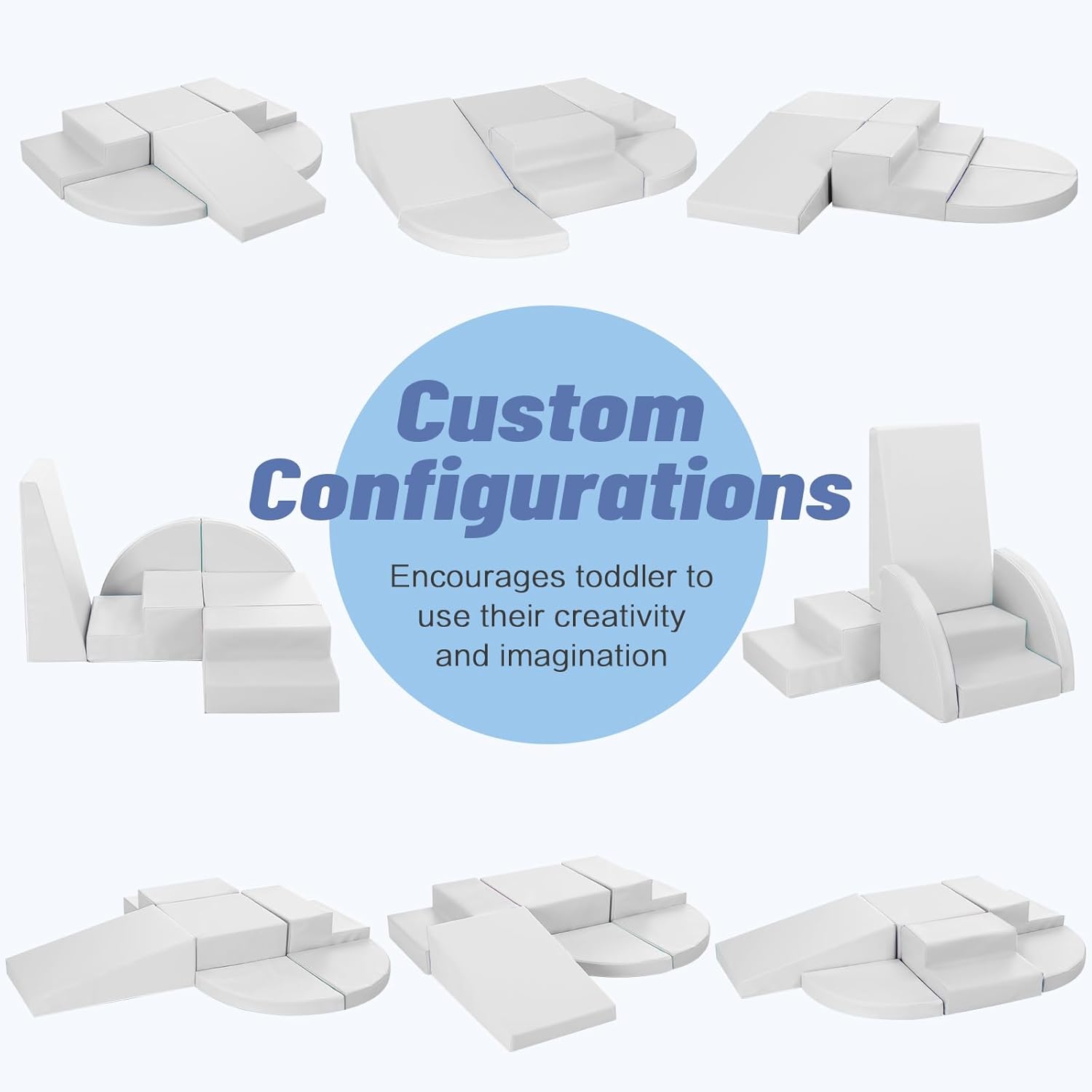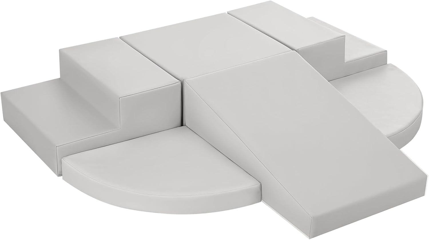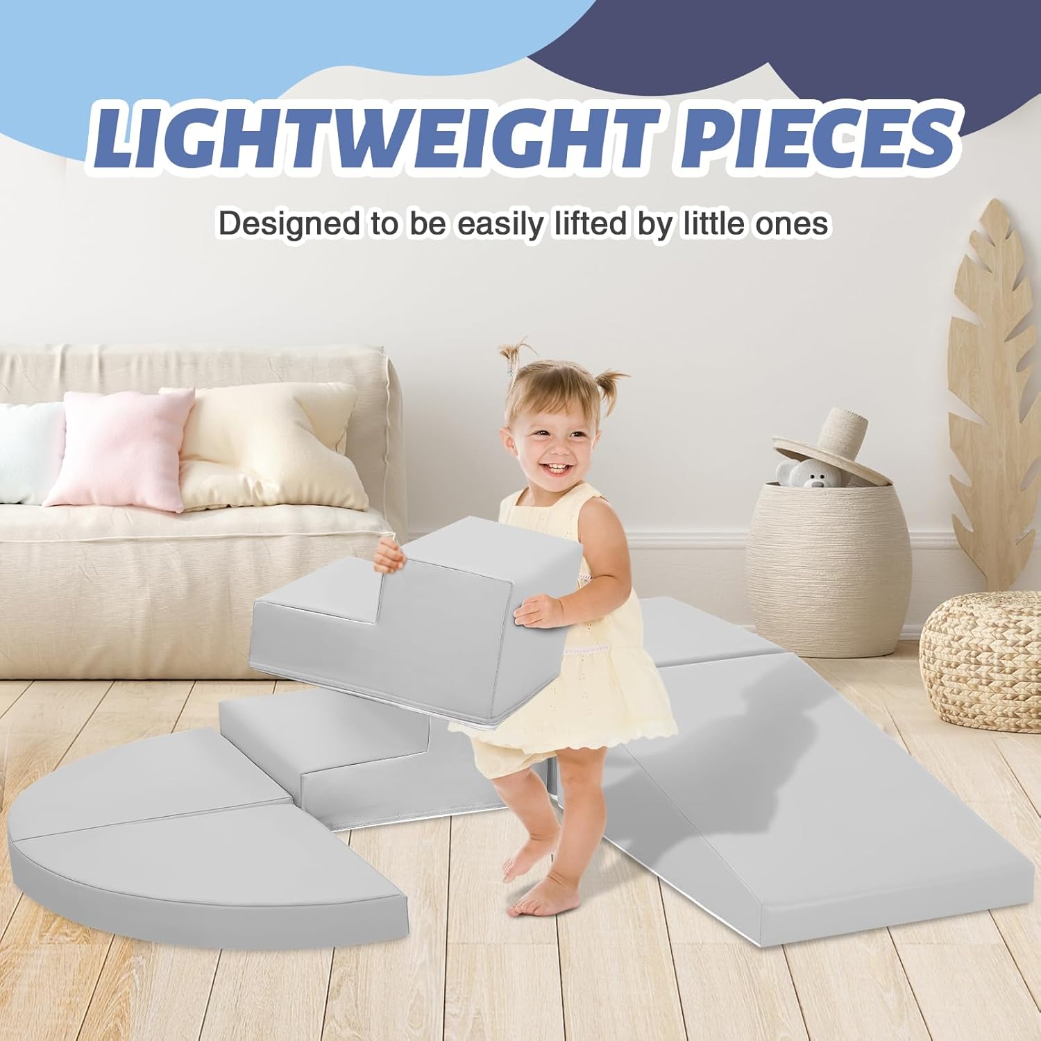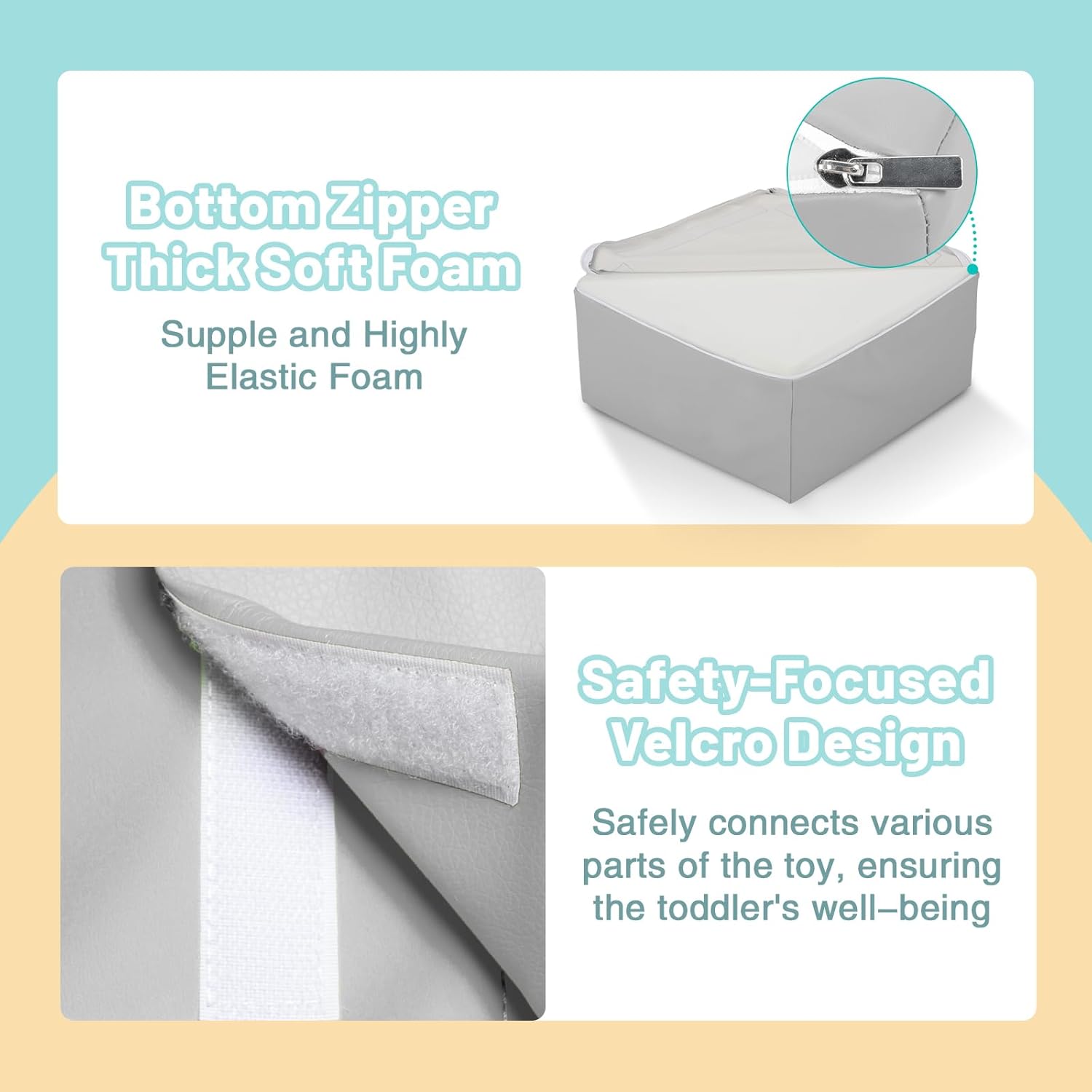 - 6-Piece Set: Baby climbing blocks consists of 2 grey stairs, 2 grey half-moons, 1 grey square and 1 grey slide. This soft play equipment stimulates your child's imagination to create endless combinations of structures, allowing them to enjoy the fun of the toy as they climb up and down, stacking and swapping four different shapes