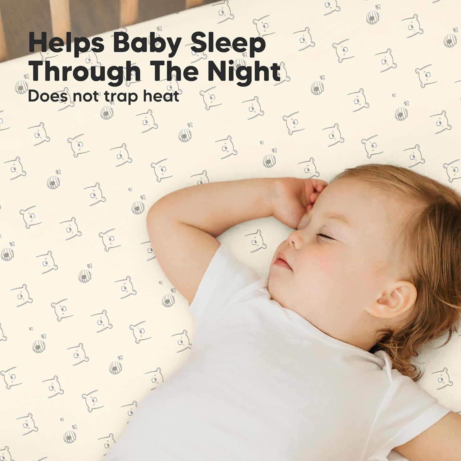 2-Pack Mini Crib Sheets Fitted - 38x26 Pack N Play Sheets for Pack and Play Mattress, Organic Cotton, Soft & Breathable Playard Bedding, Neutral Mini Toddler Bed Cover for Boys, Girls (Bumble Bear)