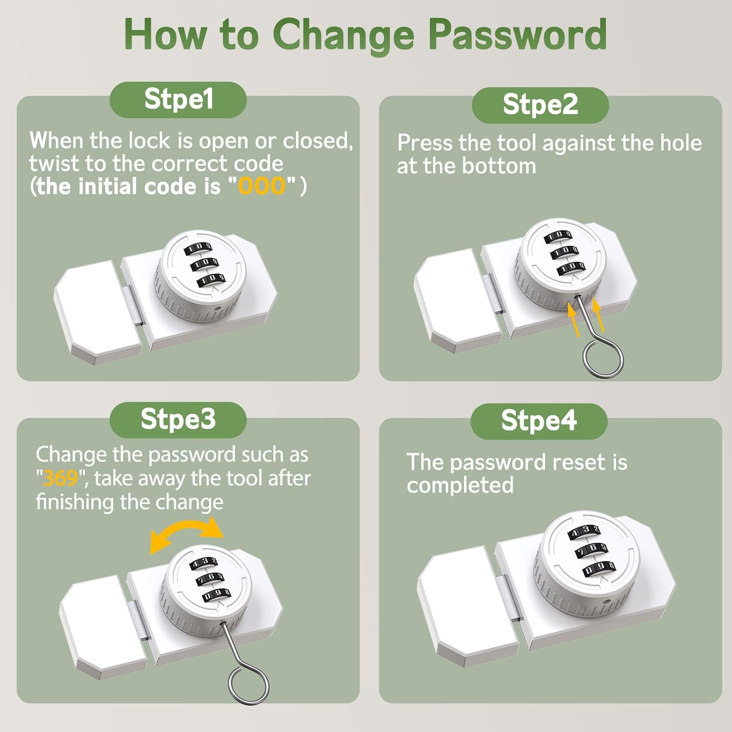 - Resettable Password: The 3-digit code offers 1000 different combinations and is difficult to crack. You can reset the code at any time, the initial password of the keyless cabinet lock is "000"