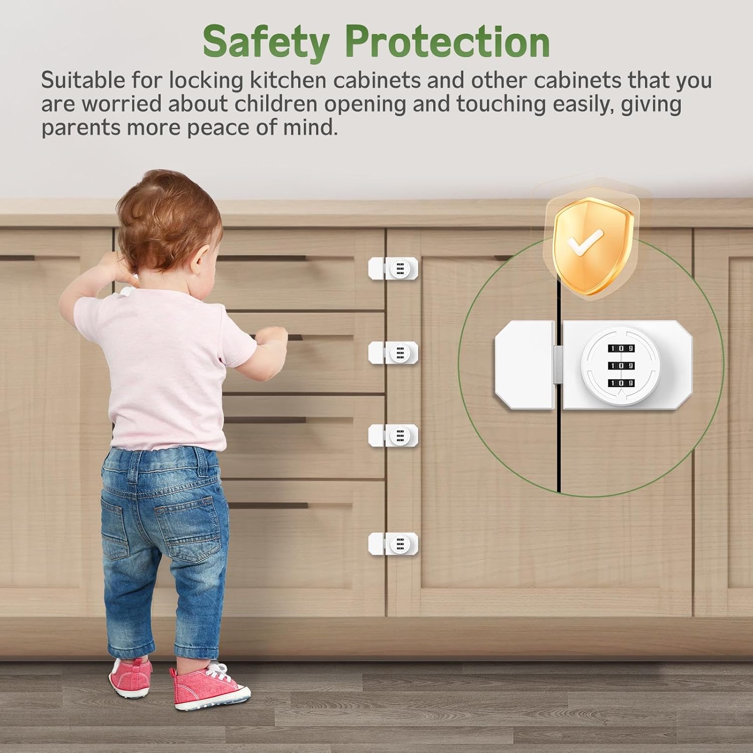 Keyless 3-Digit Combination Lock, Mechanical Stick-on Drawer Latch, Security Adhesive Cabinet Lock for Closet & Barn One-Way Doors (1, White)