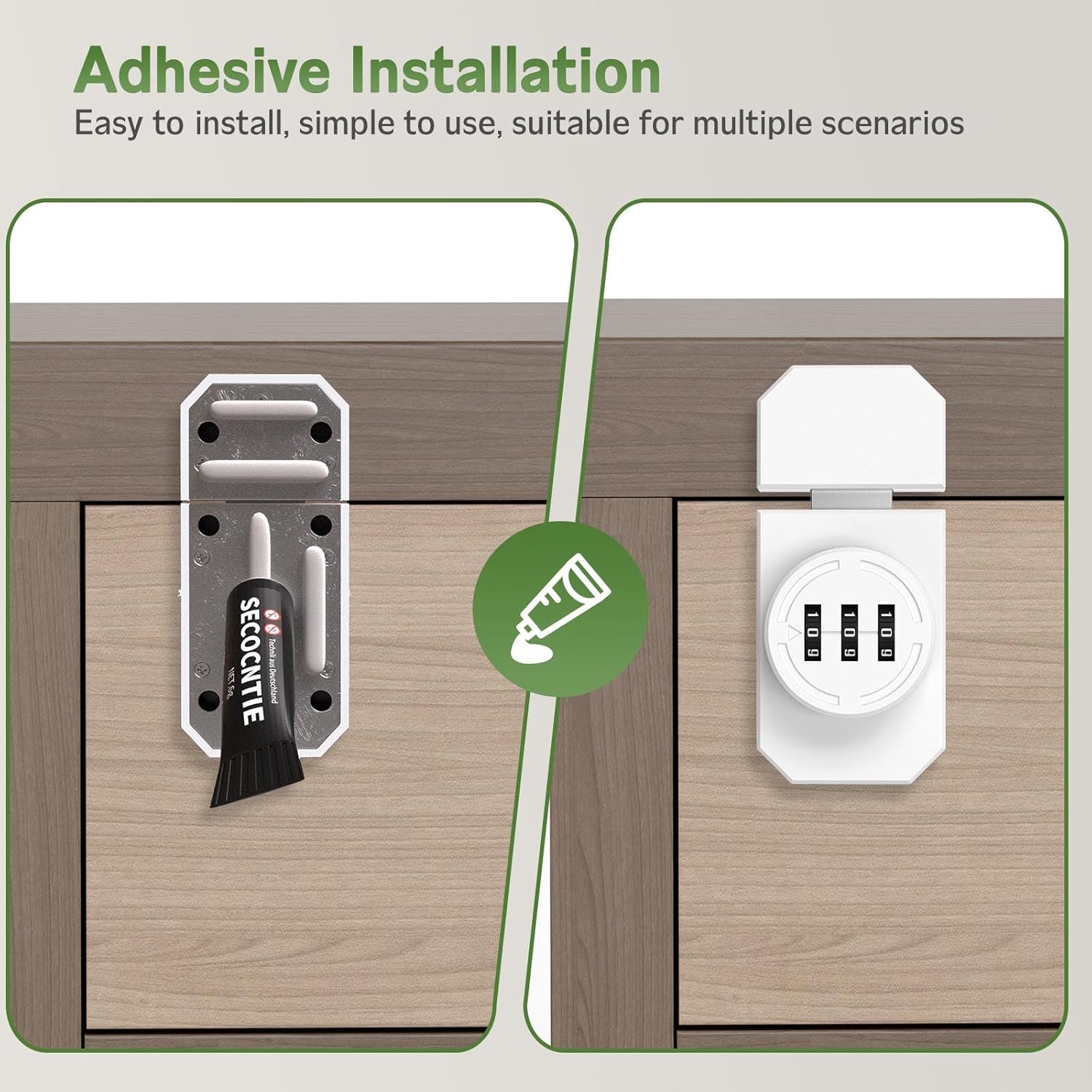 - Paste Installation: Just apply the adhesive on the back of the combination lock, then paste the lock to the pre-installed position, then wait for 72 hours to use. The attached strong adhesive has strong adhesion and is securely installed