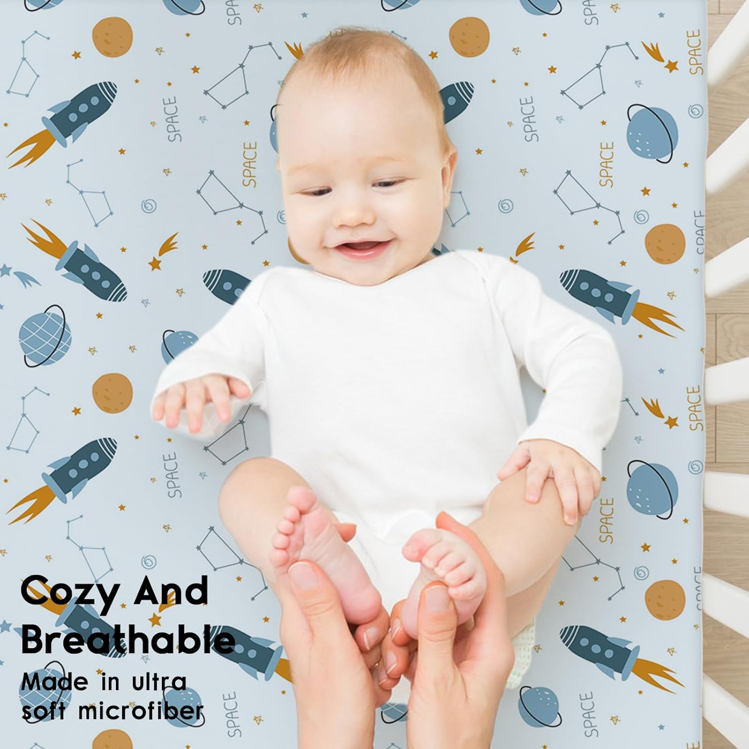 Yoofoss Baby Crib Sheets for Boys Girls, Fitted Crib Sheet 2 Pack for Standard Crib and Toddler Mattress, Super Soft Microfiber Baby Sheet 28x52x8in(Blue Rocket)