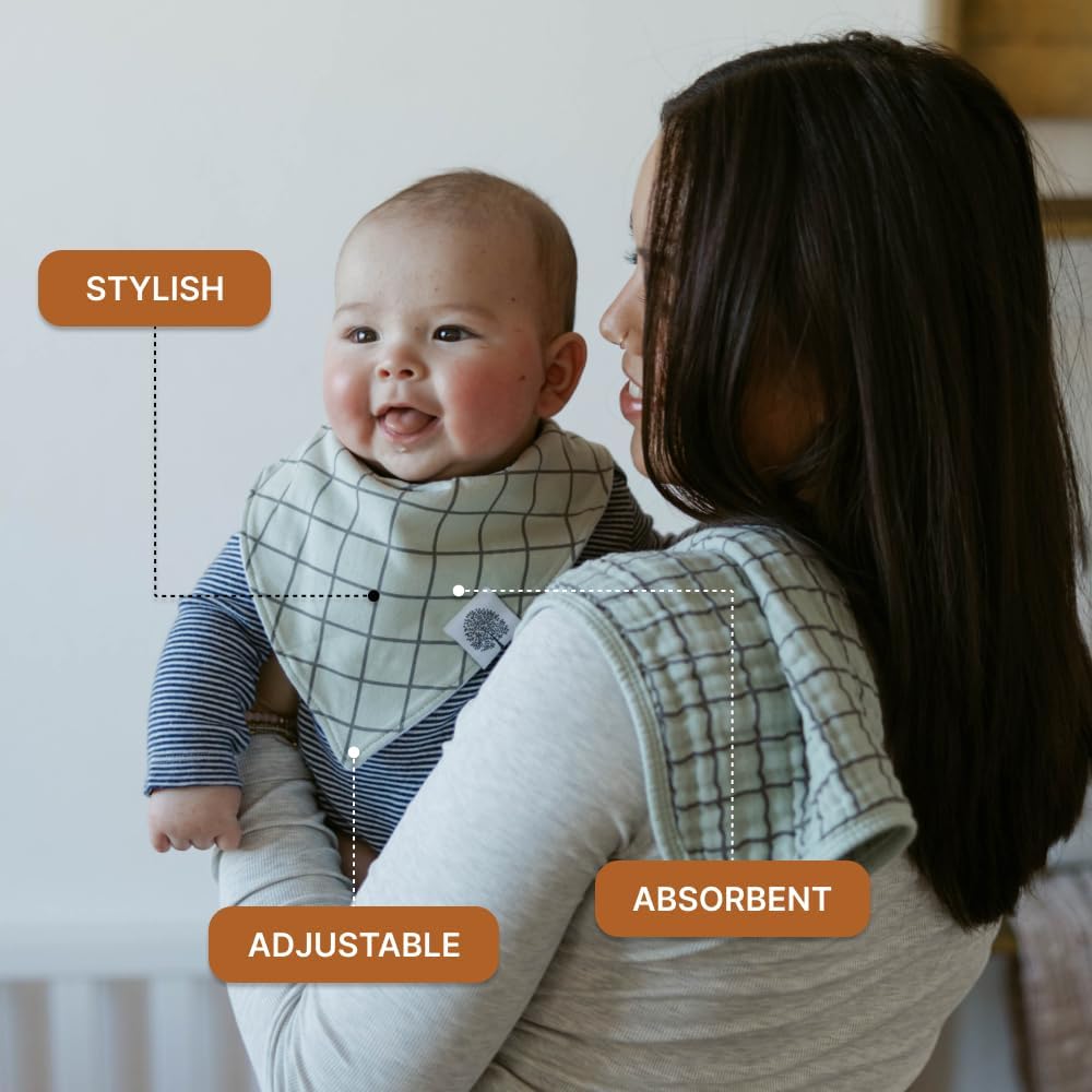• SUPER SOFT, ABSORBENT & MESS-READY – Made with 100% cotton on the front and soft, absorbent polyester backing, these bibs catch drool, spit-up, and food messes, keeping baby dry, comfortable, and stylish all day long.