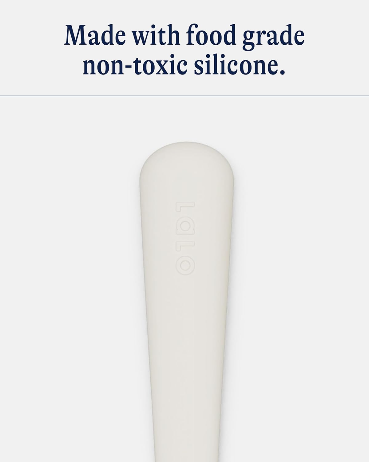 Lalo Utensils - Toddler Fork and Spoon Set - Stainless Steel and Silicone Ergonomic Toddler Utensils - Children Safe Flatware Set - 2 Pieces - Oatmeal