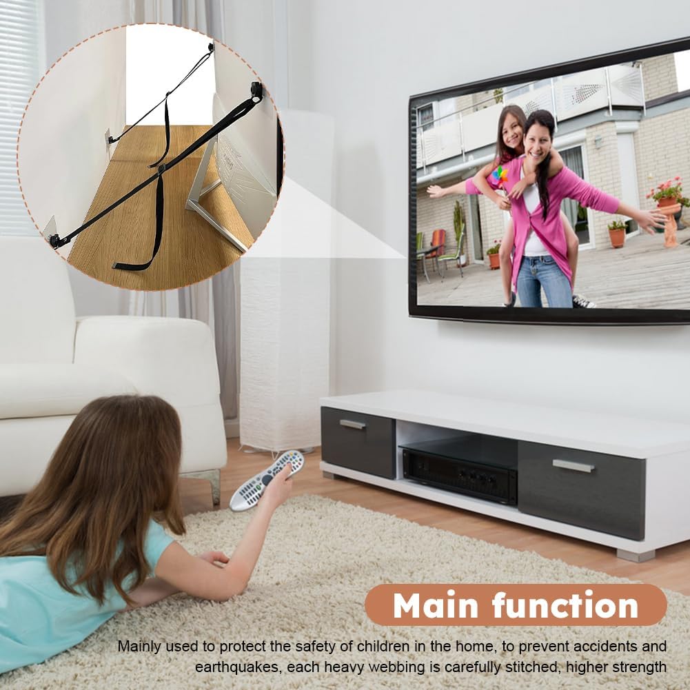 - 【Heavy duty 】TV Safety StrapsOur heavy duty tether is primarily designed to child's safety at home from rollover accidents and earthquake.The straps are detachable for cleaning and moving. Each heavy duty webbing is well-stitched for extra strength.