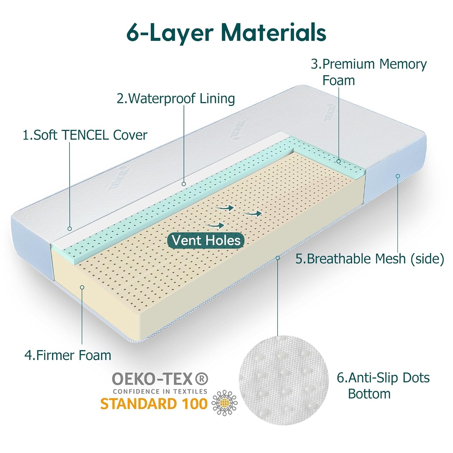 - 【BREATHABLE UPGRADE DESIGN】The mattress is made of CertiPUR-US certified high quality foam with ventilation holes, which is safe and odorless