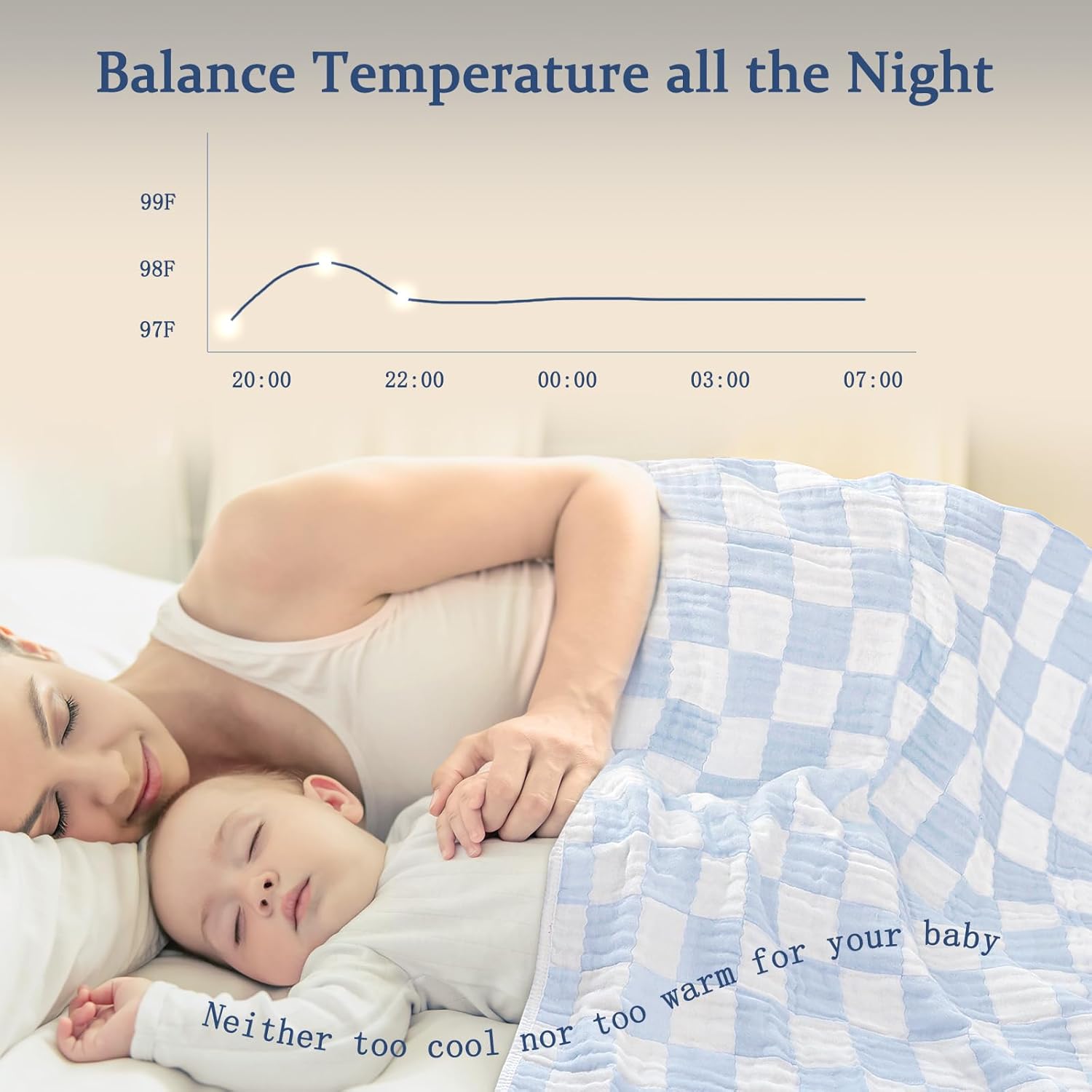 - Softer & Long-Lasting: Our muslin baby blanket is crafted with a blend of 70% cotton and 30% rayon which is softer, lighter,durability and skin-friendly than other organic cotton. Its six layers yarn textile process providing enhanced wear resistance and sweat absorption