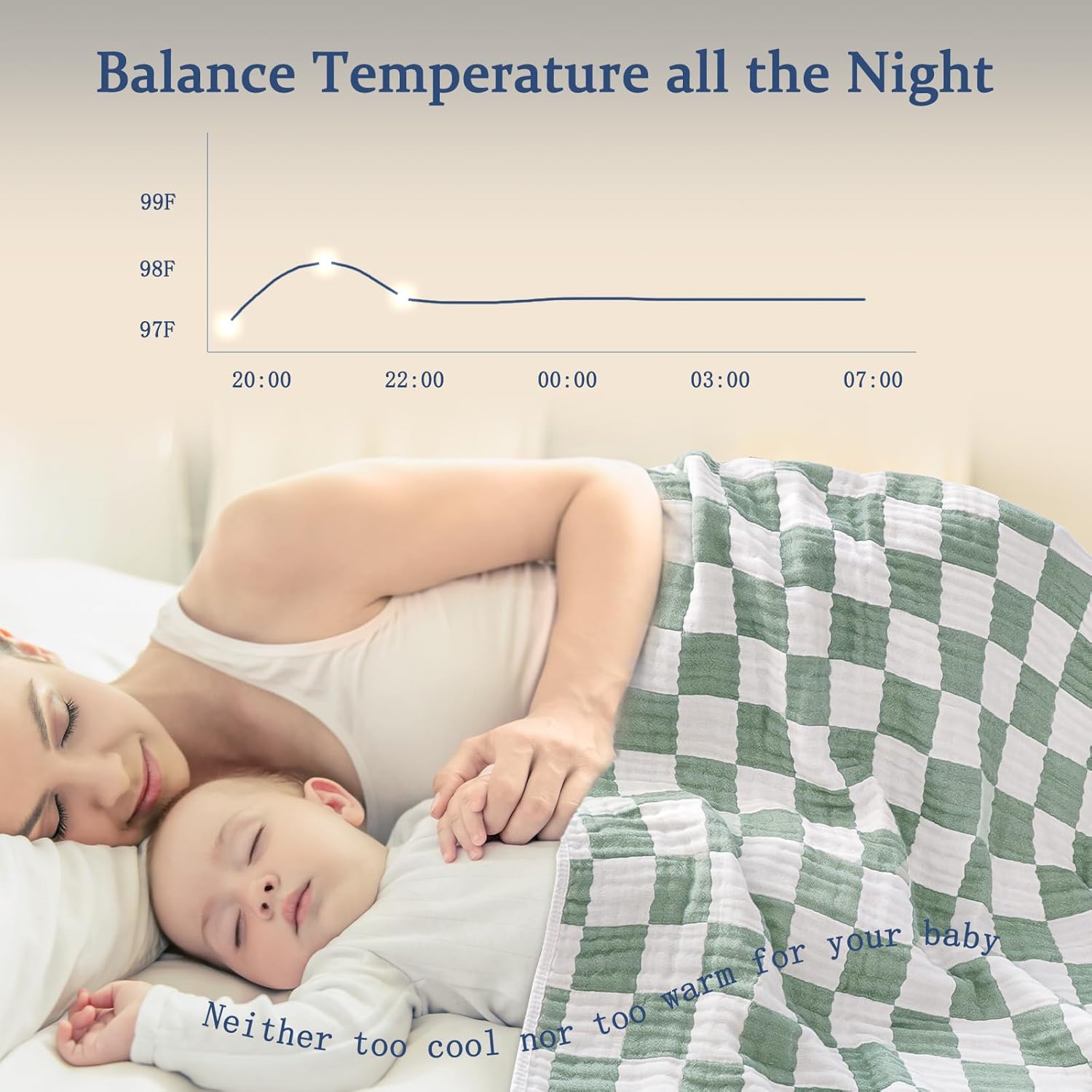 - Softer & Long-Lasting: Our muslin baby blanket is crafted with a blend of 70% cotton and 30% rayon which is softer, lighter,durability and skin-friendly than other organic cotton. Its six layers yarn textile process providing enhanced wear resistance and sweat absorption