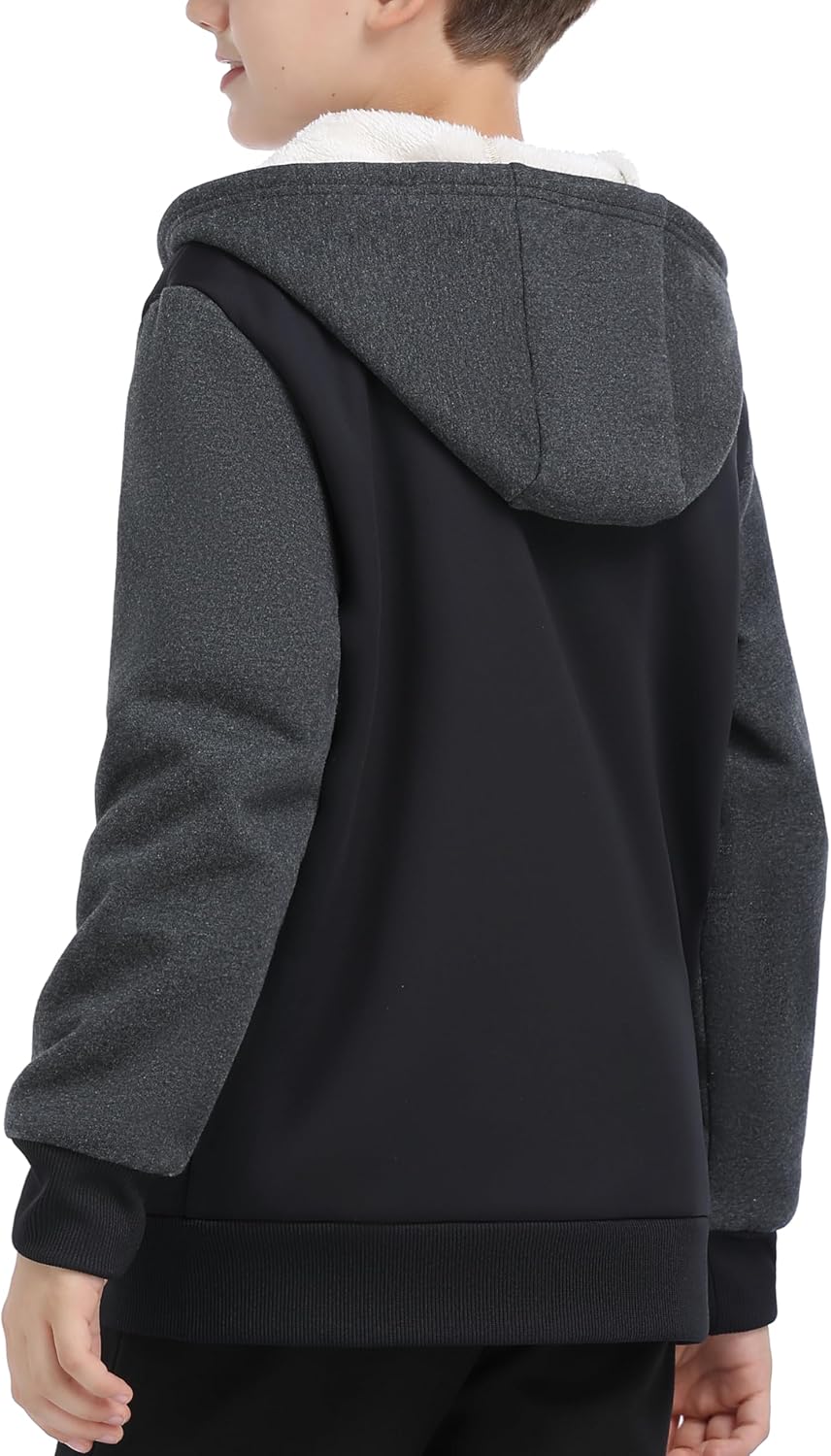 MoFiz Kids Fleece Jackets Sherpa Lined Hoodie Jacket Hooded Zip up Sweatshirt Coats for Boys Girls Winter Casual Outerwear