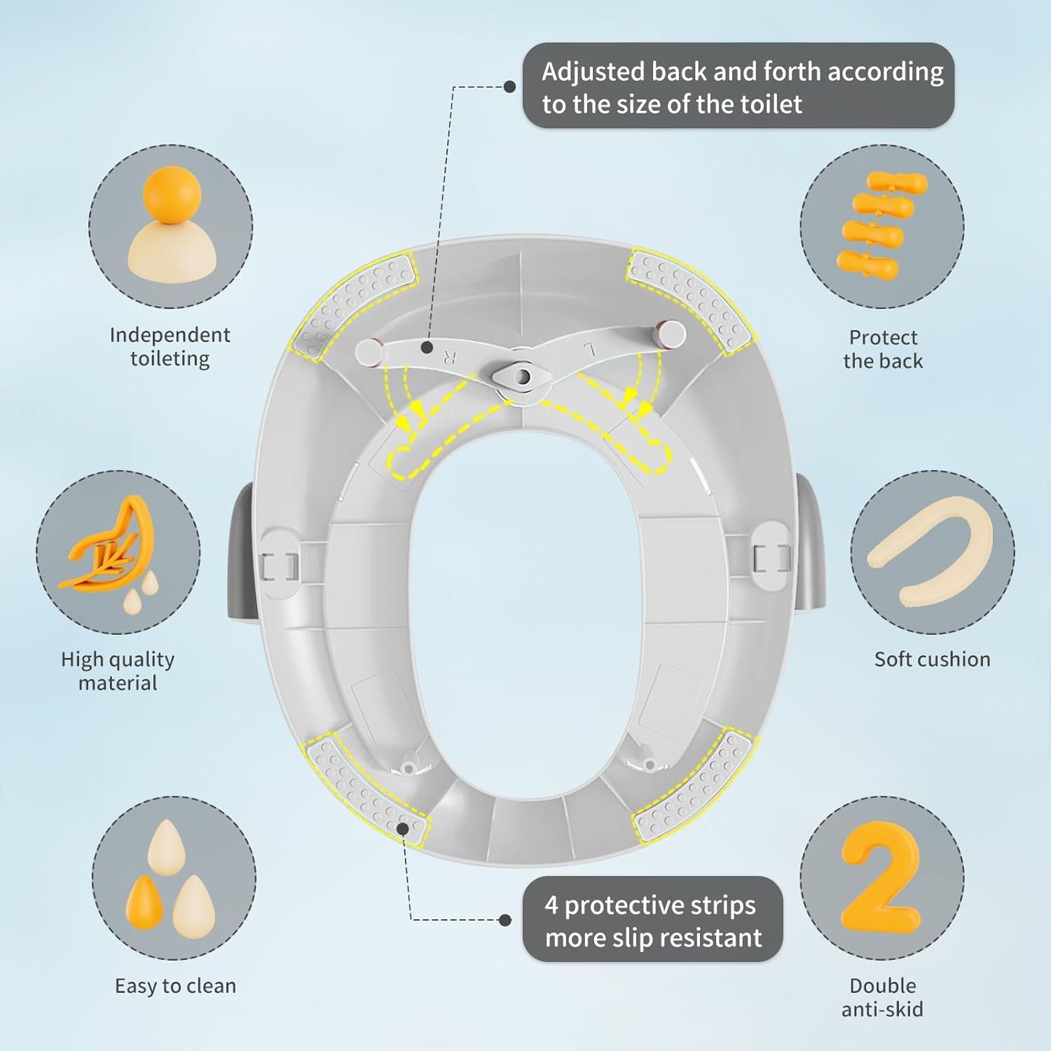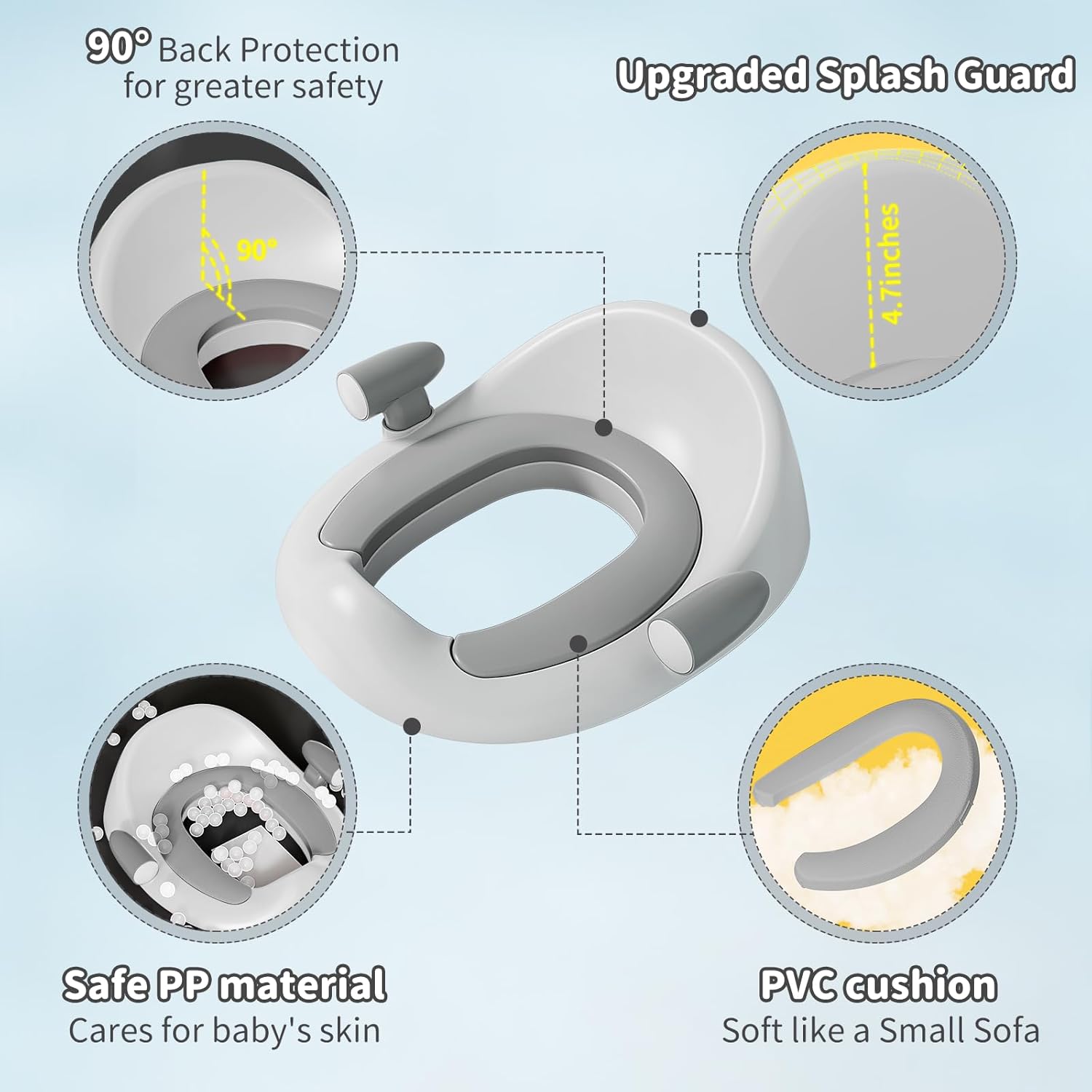 Potty Training Toilet Seat with Kids Step Stool Anti-Slip Toddler Seat, Soft Cushion, Baby Potty Training Set for Boys & Girls (Grey)