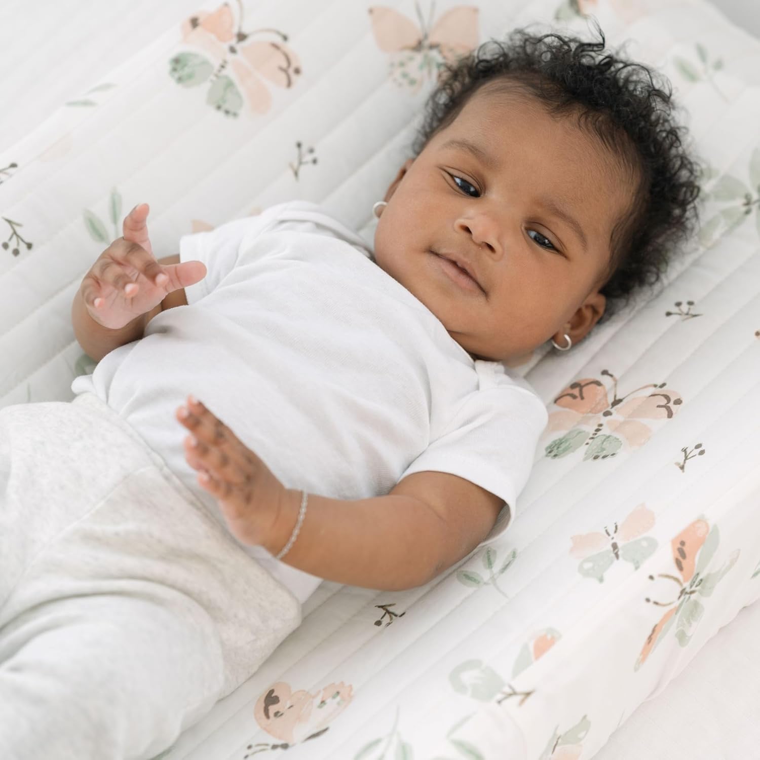 - CHIC DESIGN: Elevate your nursery's style with our chic butterfly designed changing table cover. This changing table pad enhances the overall aesthetic of your baby's room, perfectly suited for any boho nursery decor.