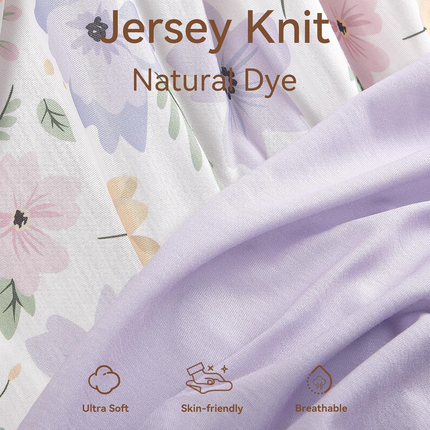 TILLYOU Changing Pad Cover Set in Soft Jersey Material - Fits 32"/34''x16 Contoured Pad for Babies, Brilliant Little Flowers and Purple