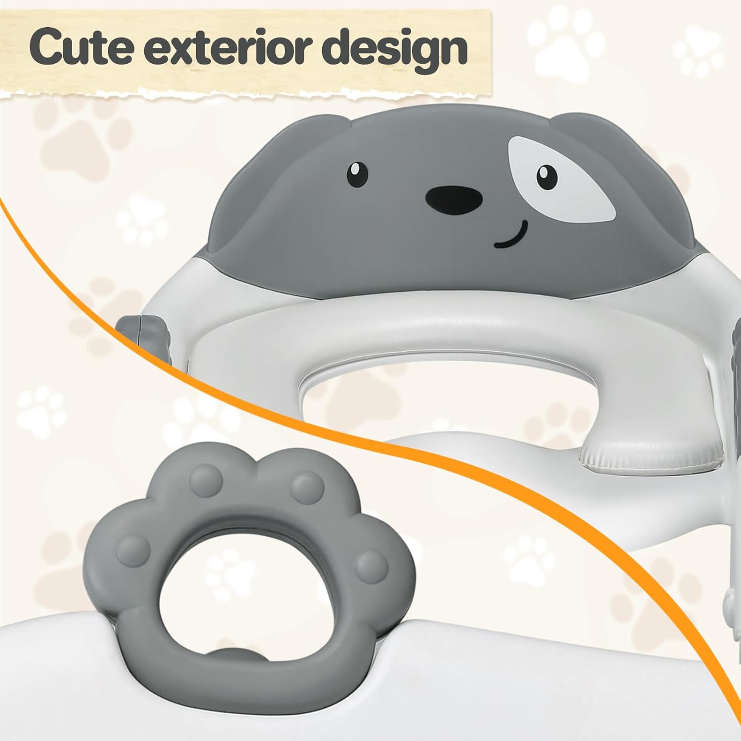 2 In 1 Potty Training Toilet Seat & Toddler Step Stool, Bottom Triangle Stability Toddler Toilet Seat, Adjustable Step & Seat Height Potty Seats (Grey)