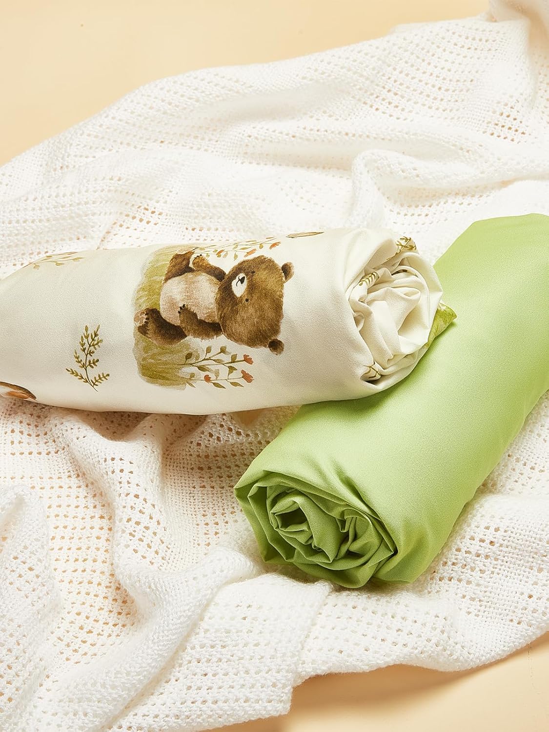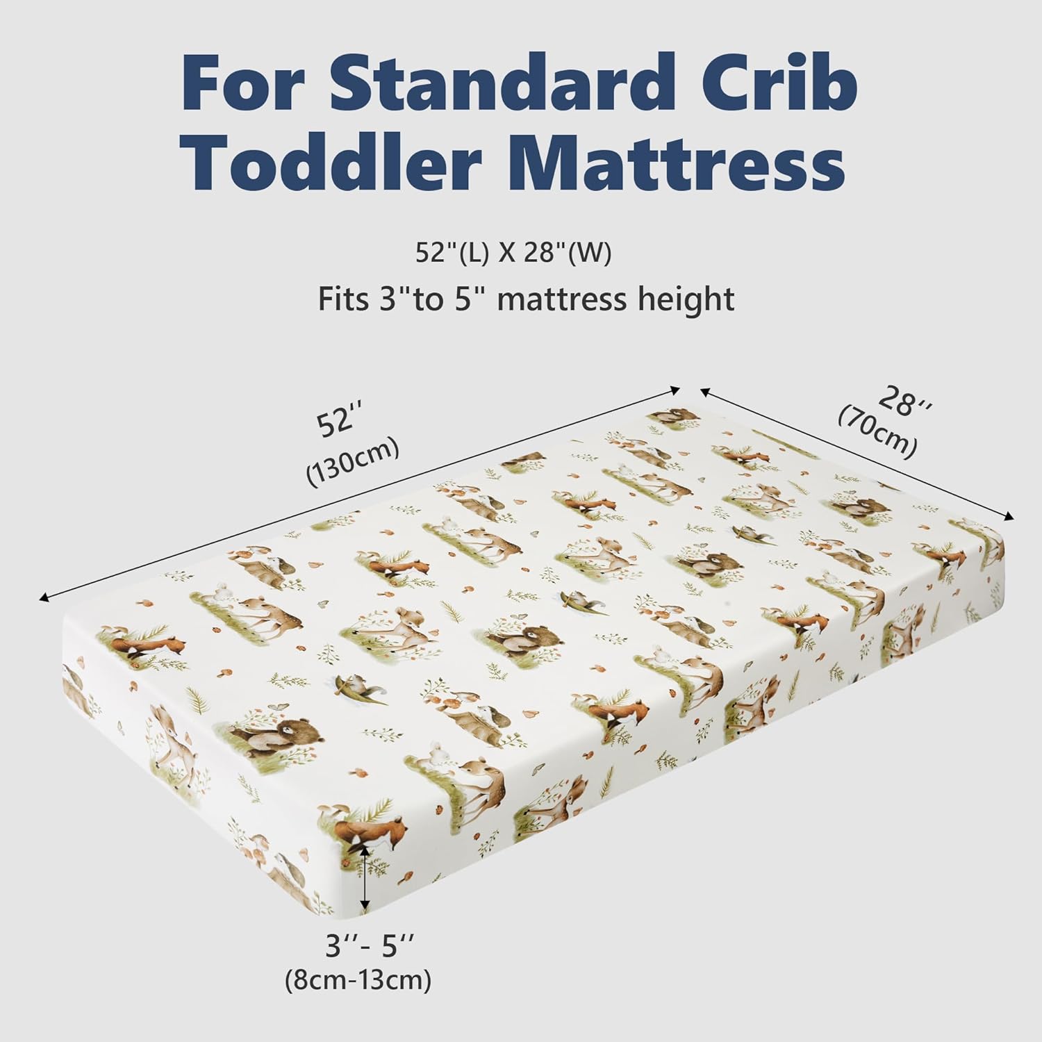 TILLYOU Baby Crib Sheets for Boys Girls, Super Soft Toddler Bed Sheets, 2 Pack Sheets for Standard Crib Mattress 28x52in, Playing in The Woods and Green
