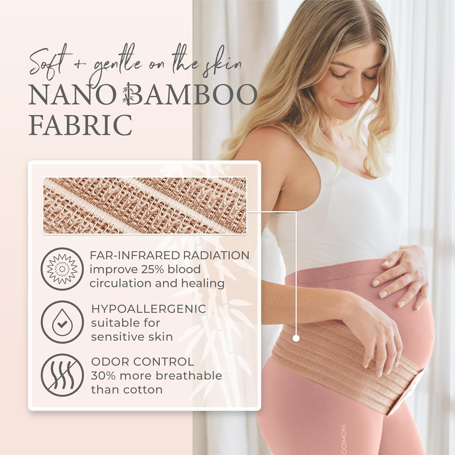 Pregnancy Belly Band Wrap, Polyester from Premium Nano Bamboo Charcoal Fiber, Back Pain Relief, Ergonomic Maternity Support Belt, C-Section Recovery Binder, Pelvic and Abdominal Support