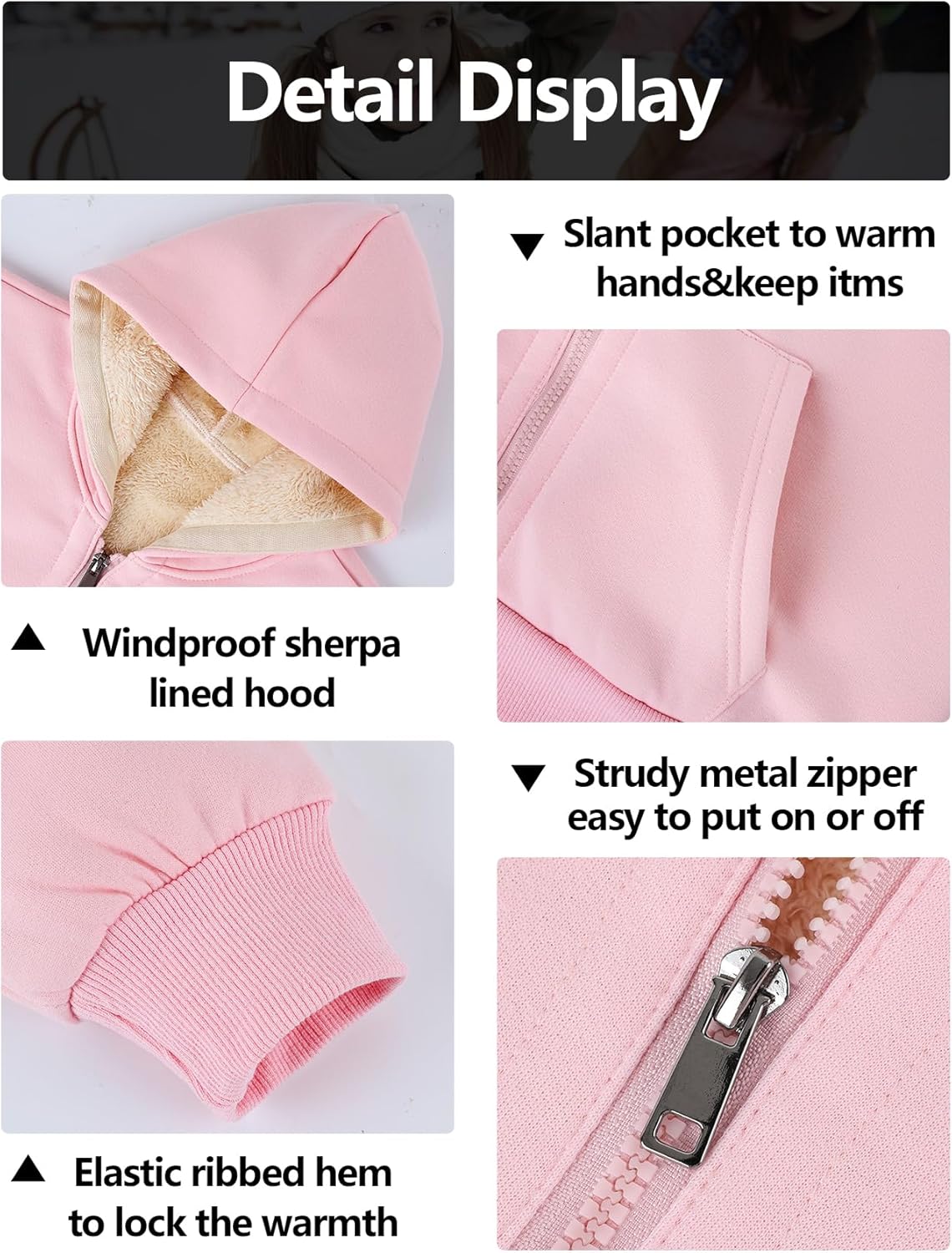 - Size: This sherpa lined girls hoodie is easy to wash, can be machine and hand washed (please do not bleach). Please refer to the SIZE CHART of this youth fleece jacket kids to choose your child's size.