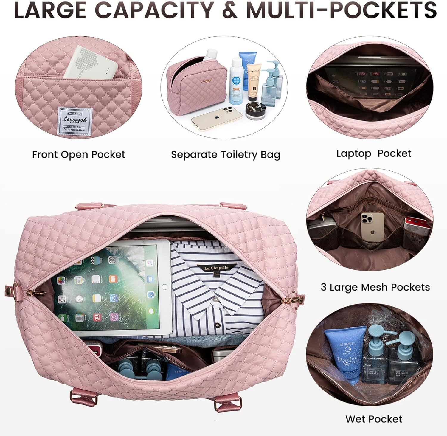 LOVEVOOK Travel Duffle Bag,Weekender Bags for Women with Shoe Compartment,Carry on Overnight Bag with Toiletry Bag,Gym Duffel Bag with Wet Pocket, Hospital Bags for Labor and Delivery