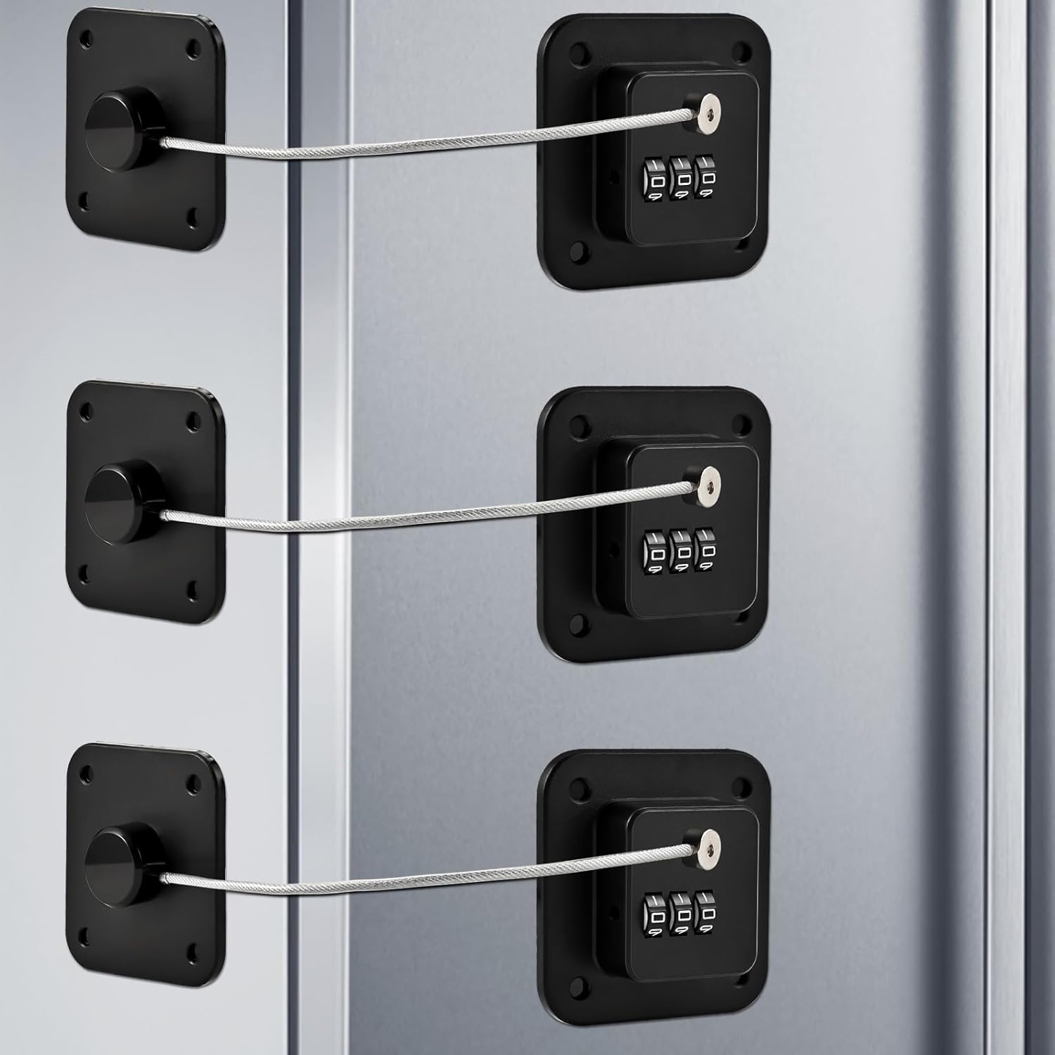 3 Pack Fridge Lock for Kids, Traceless Refrigerator Lock for Adults, Child Proof Cabinet Locks Baby Proofing, Drawer Freezer Locks for Fridge Refrigerator (Black)