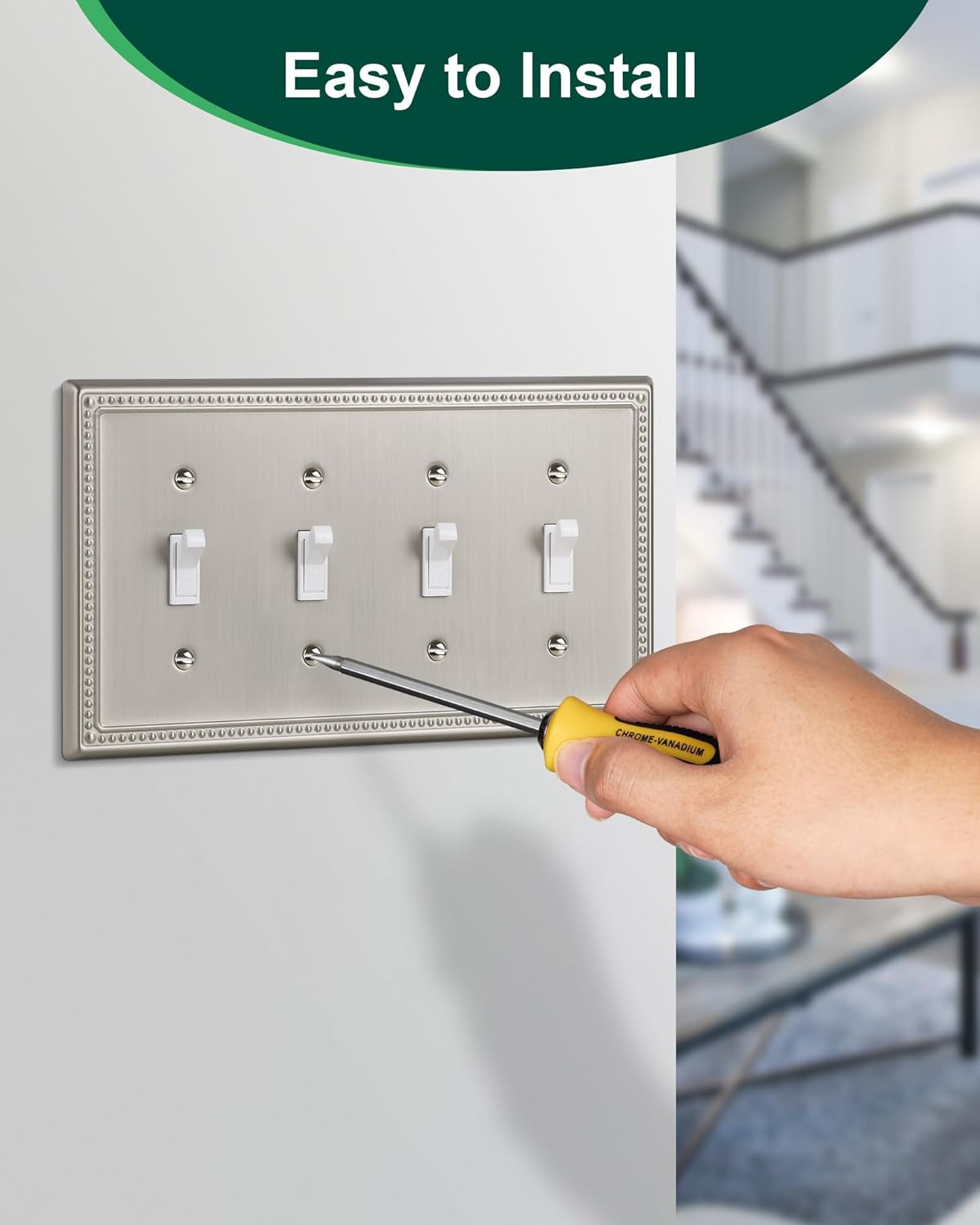 - Durable Metal - Crafted from thick and sturdy metal, this quad toggle outlet cover ensures long-lasting durability and sturdiness. Resistant to tarnishing and corrosion, not easy to break. It will maintain its elegant appearance for years to come.