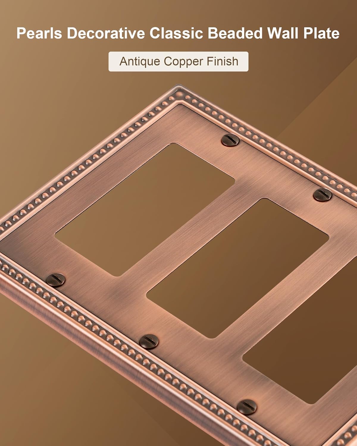 2-Pack Triple Decorator Outlet Cover Plate, Antique Copper Pearls Decorative Switch Plates and Outlet Covers, Metal Wall Plates for Electrical Outlets, Receptacle, GFCI Outlet, Dimmer Switch