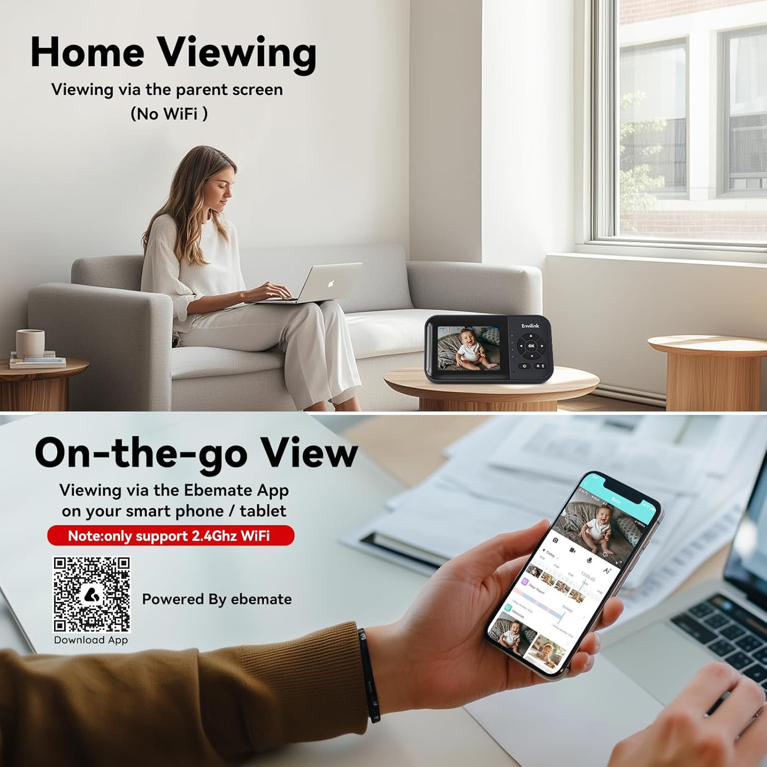 - 【Crystal Clear Audio and Video】: It's a Baby Monitor With Camera and Audio, Which Delivers Real-time Video And Clear Audio of Your Baby. With Exceptional Image Quality, You Can See Every Detail And Hear Every sound, Ensuring You Never Miss a Moment of Your Little One.