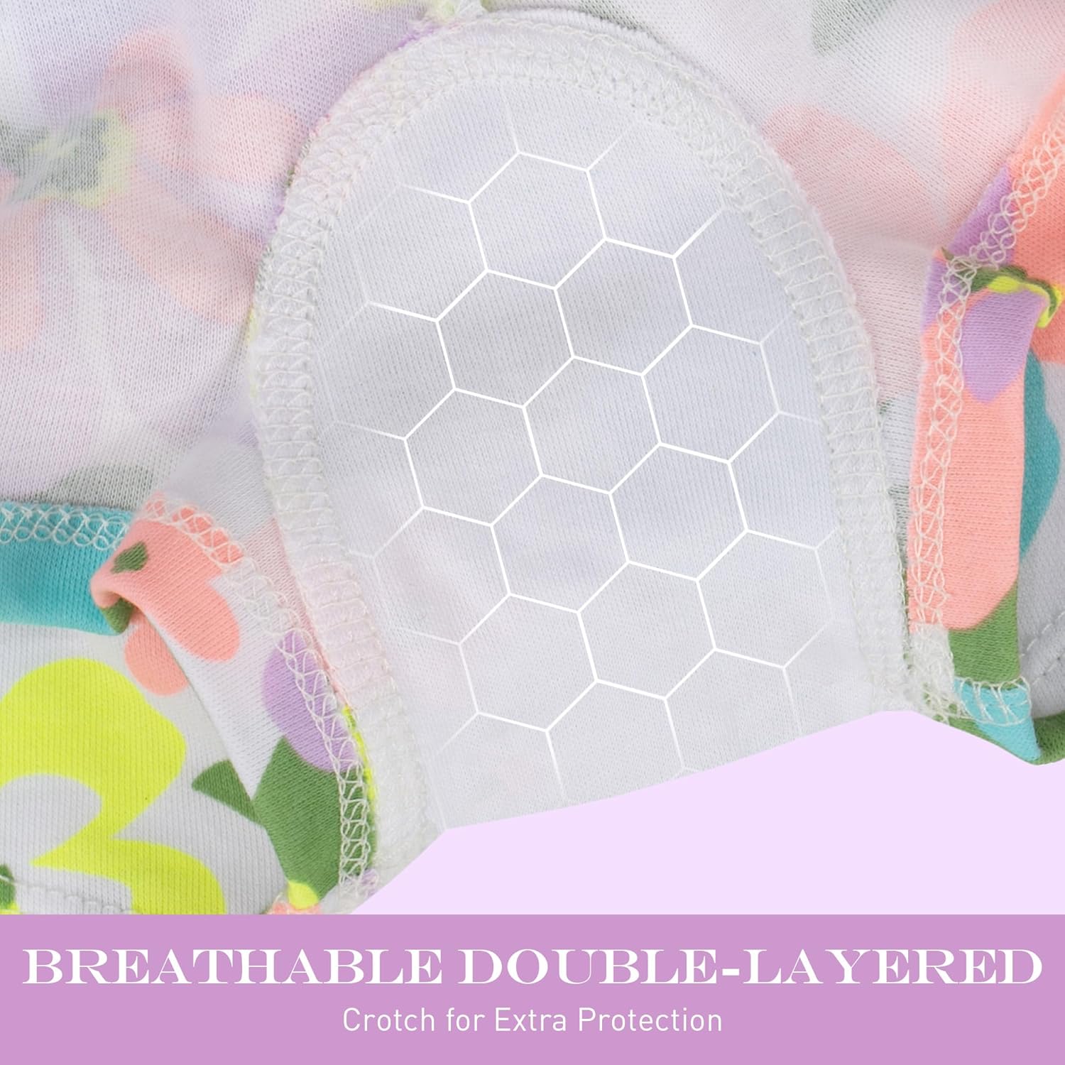• DOUBLE-LAYERED CROTCH FOR ADDED PROTECTION – Designed with durability in mind, the breathable double-layered crotch adds extra protection and long-lasting comfort. Whether for daytime activities or overnight wear, these toddler panties offer reliable support.
