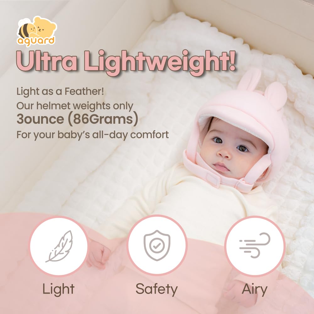 Baby Head Protector- Baby Helmet Cotton, Adjustable & Ultra-Lightweight Head Protector for Crawling & Walking Infants, Toddlers (Bunny(Pink))