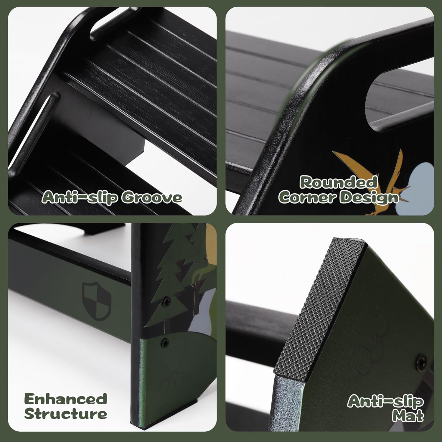 - Safety Guardian: The step stool for toddlers is a little guardian for kids to ensure their safety while using it; The bottom crossbar and non-slip pads design makes it more stable for kids to climb, and the non-slip grooves on the surface of each step further enhances safety; The delicate touch of the bamboo material prevents kids from getting scratched during use, giving parents added peace of mind; The load capacity is up to 300 lbs, it can be used by adults as well