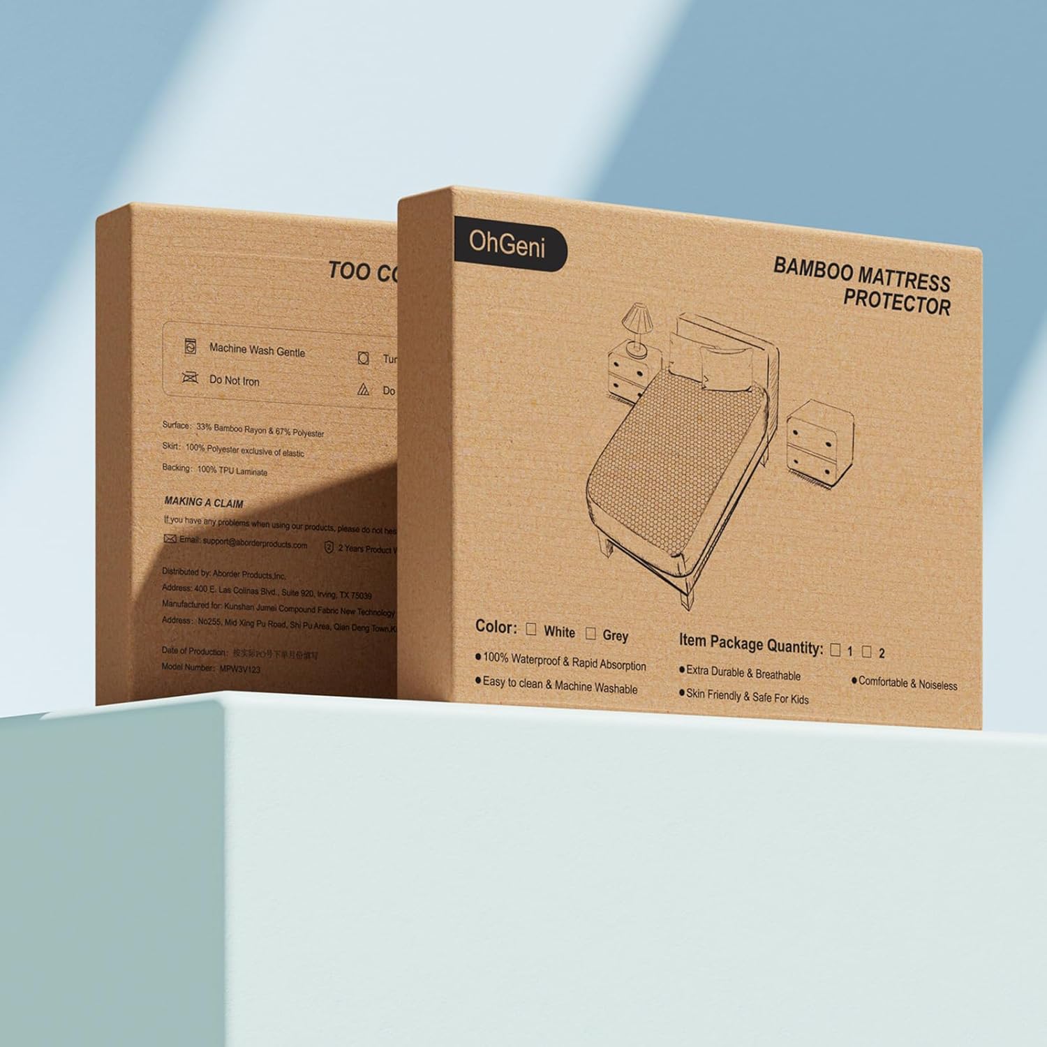 OhGeni 100% Waterproof Mattress Protector, King-Gray Size Mattress Pad, Fits 6"-20" Mattresses with Deep Pocket, Cooling, Breathable Fitted Sheets, Soft Bed Cover, Noiseless, Machine Washable